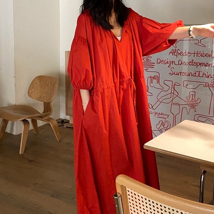 ワンピース マキシ丈ワンピース 5分袖 Vネック 胸元 マキシ丈 ウエストマーク かわいい 大人可愛い きれいめ シンプル カジュアル 上品 おしゃれ かっこいい 大人女子 こなれ感 個性的 主役級 存在感 ラフ ルーズ キュート クール ナチュラル ベーシック 無地 レディース 女性用 ママ マタニティOL 通勤 学生 通学 デート お出かけ お泊まり イベント 女子会 休日 カフェ ショッピング 旅行 リゾート コンパ レストラン レイヤード 重ね着 普段使い 着回し ワンサイズ ゆったり 体型カバー