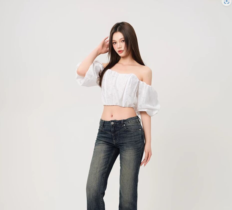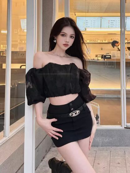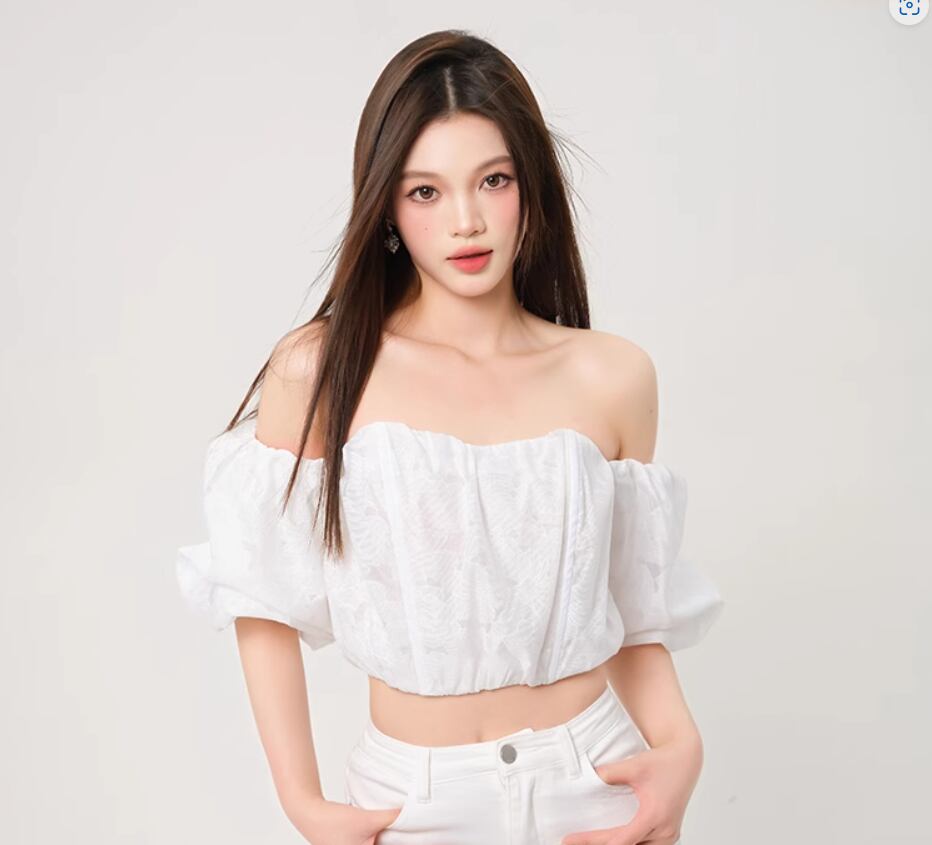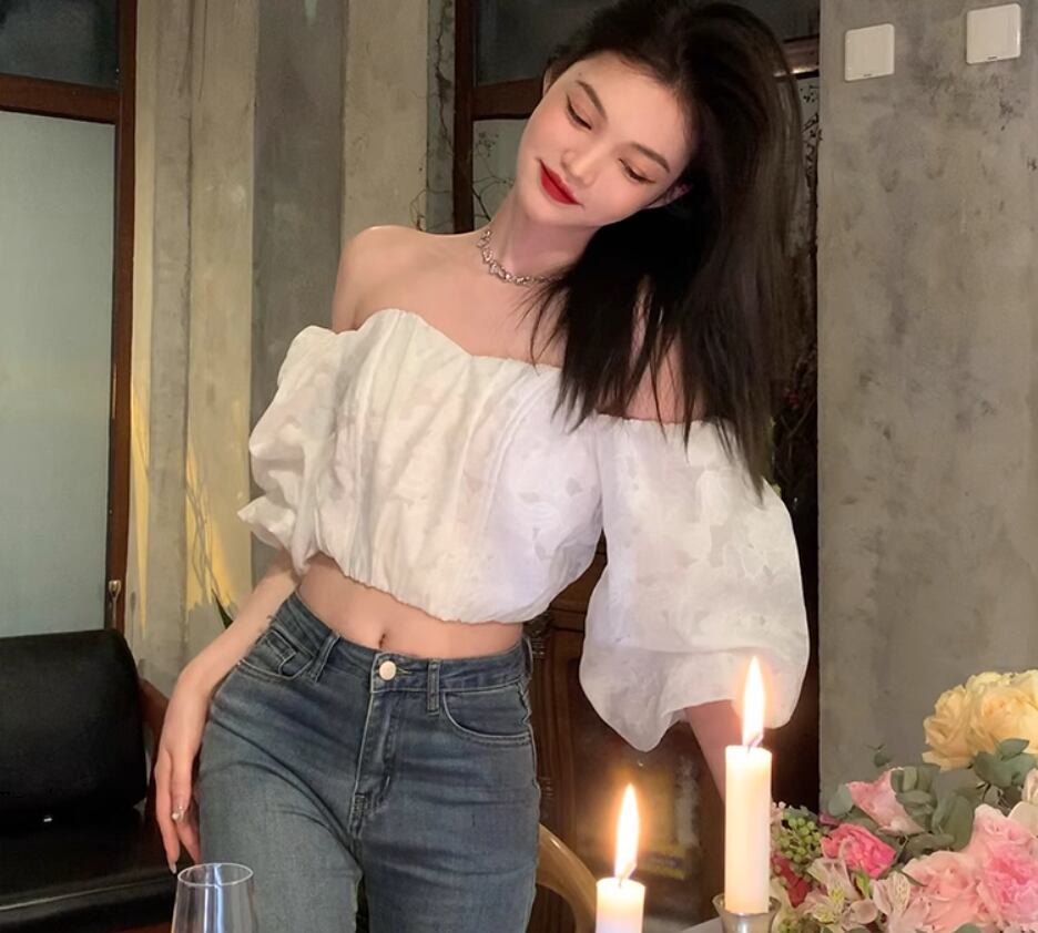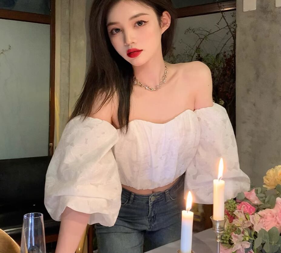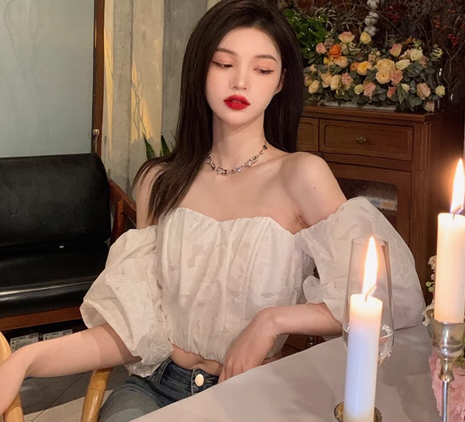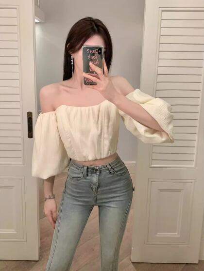ふんわり素材のボリューム袖が可愛いオフショルブラウス
