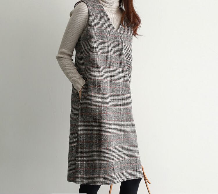 この膝丈ワンピースは、VネックとストレートIラインが女性らしいシルエットを演出してくれます。袖なしで襟もないシンプルなデザインなので、さまざまなシーンに合わせやすく使い勝手抜群です。大人可愛い雰囲気を演出しつつも、上品でおしゃれな印象を与えます。