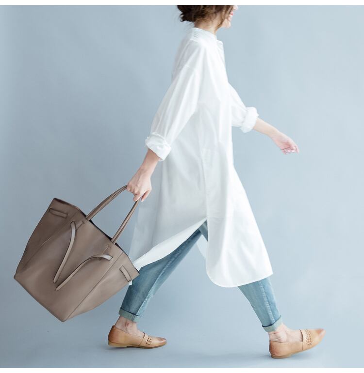 爽やかなホワイトカラーでシンプルながらも個性的なシャツワンピース。フレアなAラインシルエットと切り替えデザインが、女性らしさを引き立てます。スタンドカラーと袖ありのデザインで、上品な印象を与えながらも、カジュアルにも着こなせる一着です。ミモレ丈で大人可愛いスタイリングが叶います。デートや女子会、休日のお出かけにぴったりなアイテム。一枚で主役になれる存在感と抜け感を演出し、ワードローブに華やかさをプラスしてくれる頼れるアイテムです。定番のシンプルさで着回し力も抜群。お洒落を楽しみたい大人女子にぴったりのワンピースです。
