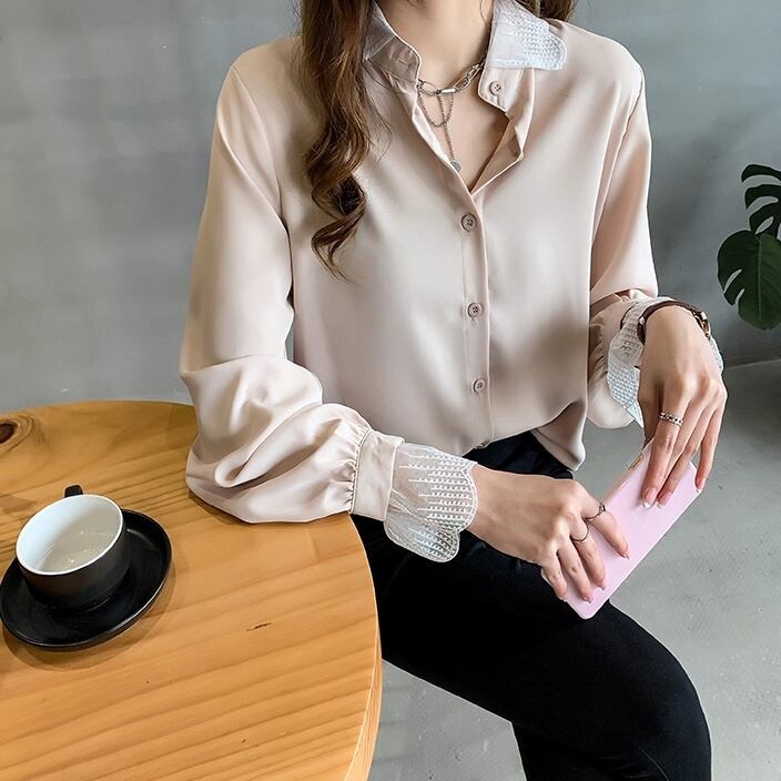 トップス シャツ ミディアム丈 長袖 襟付き 前開き ボタン レース 透け感 かわいい 大人可愛い きれいめ シンプル 上品 おしゃれ かっこいい レトロ こなれ感 きちんと 個性的 主役級 存在感 抜け感 キュート ナチュラル ガーリー ベーシック フォーマル レディース 女性用 ママ OL 通勤 オフィス 学生 通学 デート お出かけ お泊まり イベント 女子会 休日 アウトドア カフェ ショッピング レストラン コンパ レイヤード 重ね着 普段使い 着回し M L XL 2XL 3XL 4XL