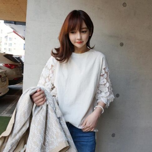 ラウンドネックに刺繡があしらわれ、シースルー素材で上品な印象を演出します。