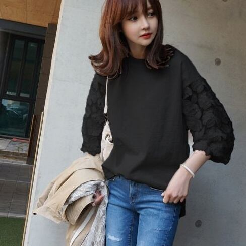 柔らかな雰囲気漂うガーリーな5分袖Tシャツです。