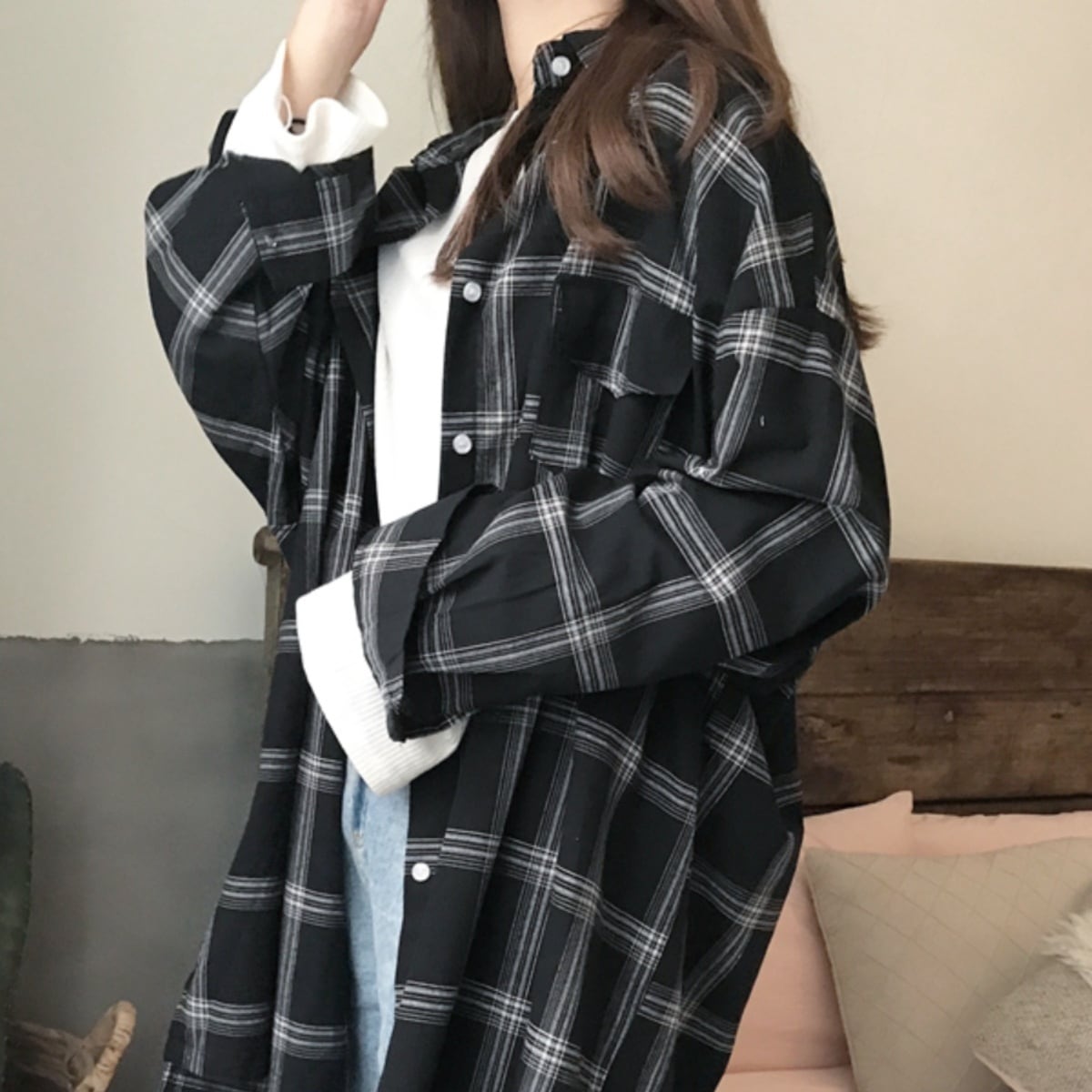 トップス シャツ ミディアム丈 長袖 角襟 前開き ボタン 胸ポケットオーバーサイズ かわいい 大人可愛い きれいめ シンプル 上品 おしゃれ かっこいい レトロ こなれ感 きちんと 個性的 主役級 存在感 抜け感 キュート ナチュラル ベーシック メンズライク チェック柄 レディース 女性用 ママ マタニティOL 通勤 学生 通学 デート お出かけ お泊まり イベント 女子会 休日 アウトドア カフェ ショッピング レストラン コンパ レイヤード 重ね着 普段使い 着回し M L XL 2XL 3XL