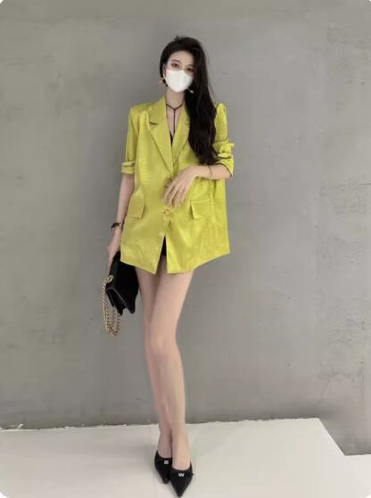 クロコダイル柄テーラードジャケット アウター 上着 袖あり 長袖 襟付き ストレート ポケット 無地 春 夏 秋 10代 20代 40代 レディース 女性用 お出かけ 休日 旅行 着回し 普段使い 楽ちん S M L XL 2XL 白 ホワイト 黒 ブラック 緑 グリーン
