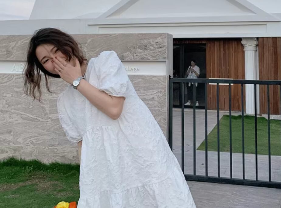 パフスリーブ×ティアードデザインが可愛いワンピ―ス