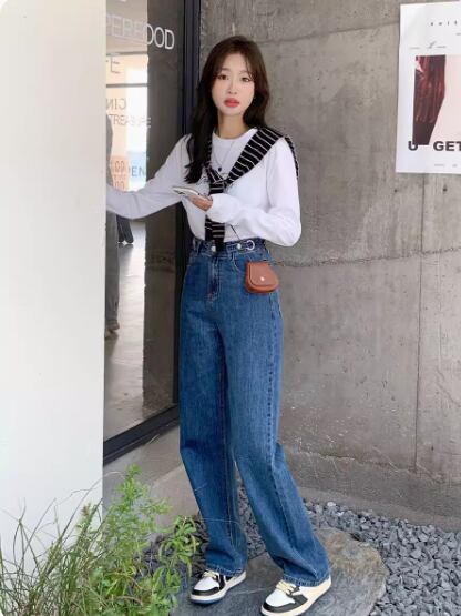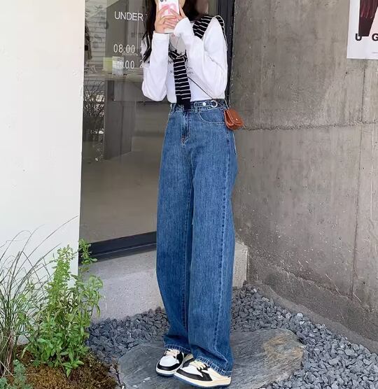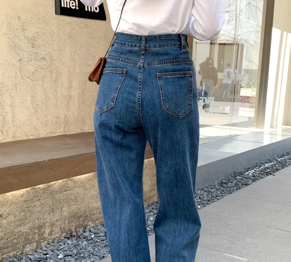 ハイウエストストレートデニム ボトムス パンツ ストレートパンツ デニムパンツ ロング丈 9分丈 ポケット ハイウエスト デニム ブルーデニム シンプル カジュアル 大人 おしゃれ お洒落 かっこいい 大人女子 こなれ感 ラフ ボーイッシュ 無地 春 夏 秋 オールシーズン 10代 20代 30代 40代 レディース 女性用 ママ お出かけ 休日 旅行 着回し 普段使い スタイル 美脚 脚長 定番 XS S M L XL 青 ブルー