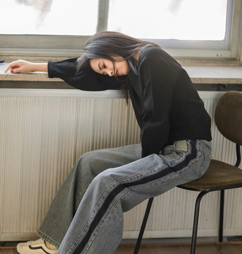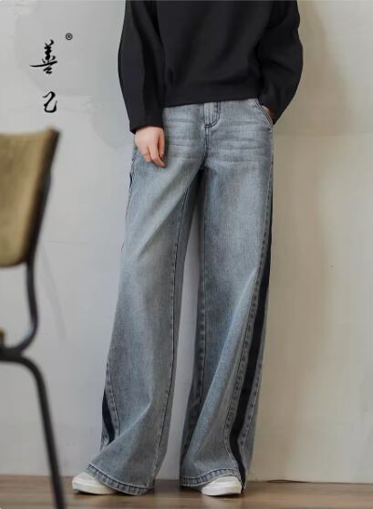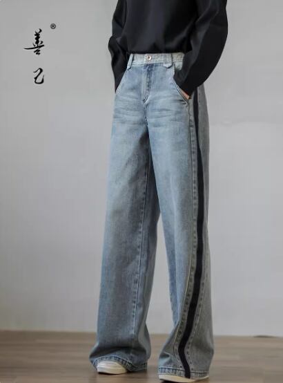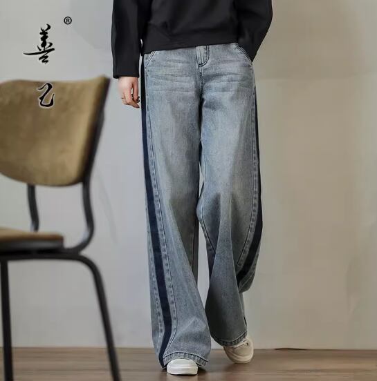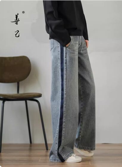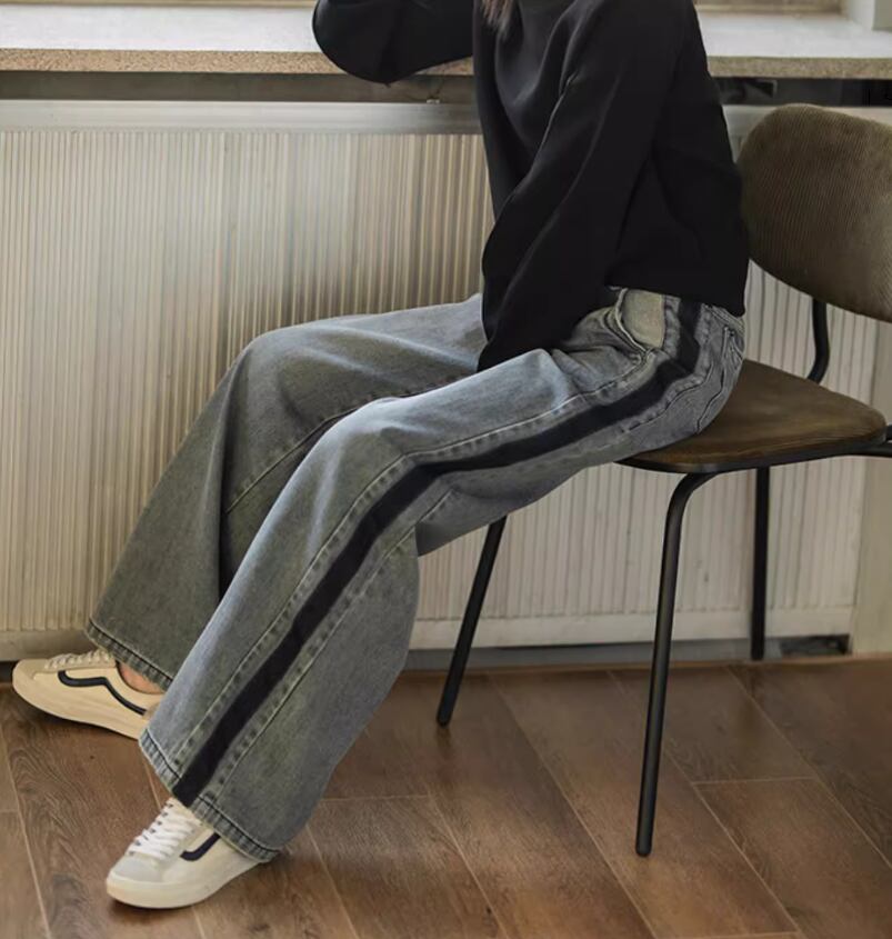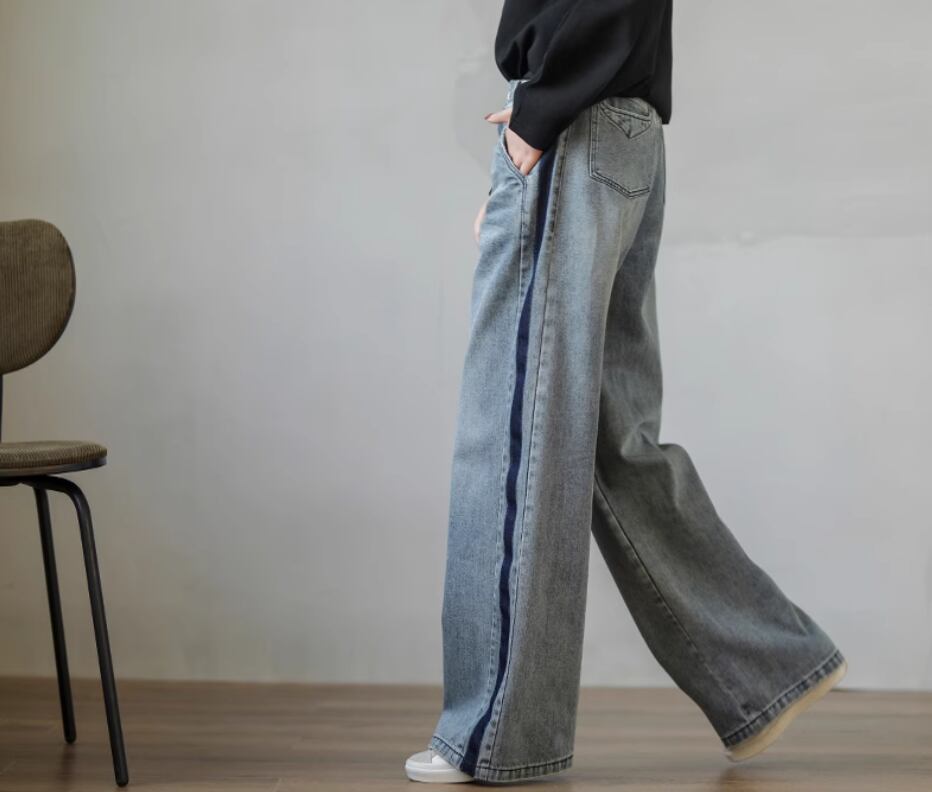 サイドラインワイドデニム ボトムス パンツ ワイドパンツ デニムパンツ ロング丈 ハイウエスト ブルーデニム シンプル カジュアル おしゃれ お洒落 大人女子 こなれ感 個性的 春 夏 秋 冬 オールシーズン 10代 20代 30代 40代 レディース 女性用 ママ お出かけ 休日 着回し 普段使い S M L XL 2XL 青 ブルー