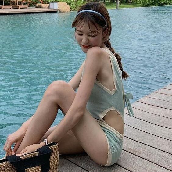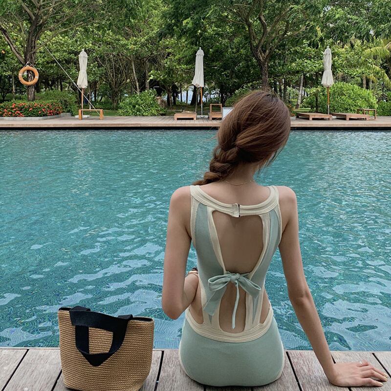 ハイウエストで腰のラインを美しく見せるこちらの水着は、バックリボンがアクセントになっています。