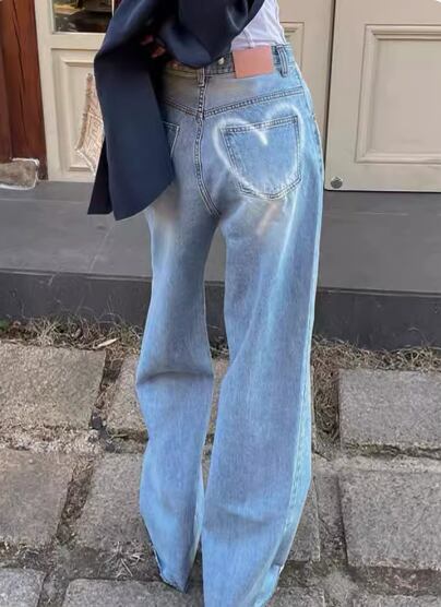 後ろハートワイドデニムパンツ ボトムス ワイドパンツ デニムパンツ ロング丈 マキシ丈 かわいい 大人可愛い シンプル カジュアル おしゃれ お洒落 かっこいい こなれ感 ラフ 無地 春 夏 秋 冬 オールシーズン 10代 20代 30代 40代 レディース 女性用 お出かけ 休日 着回し 普段使い 楽ちん S M L XL ライトブルー