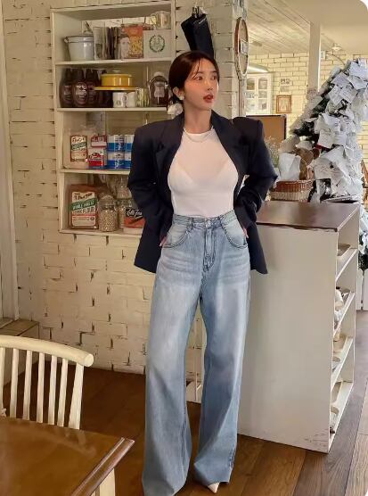 ハイウエストとワイドシルエットで脚長効果を実現!