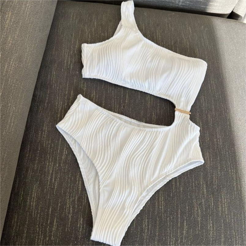 ワンショルダーデザインで胸元の谷間や腰のセクシーさを引き立てます。