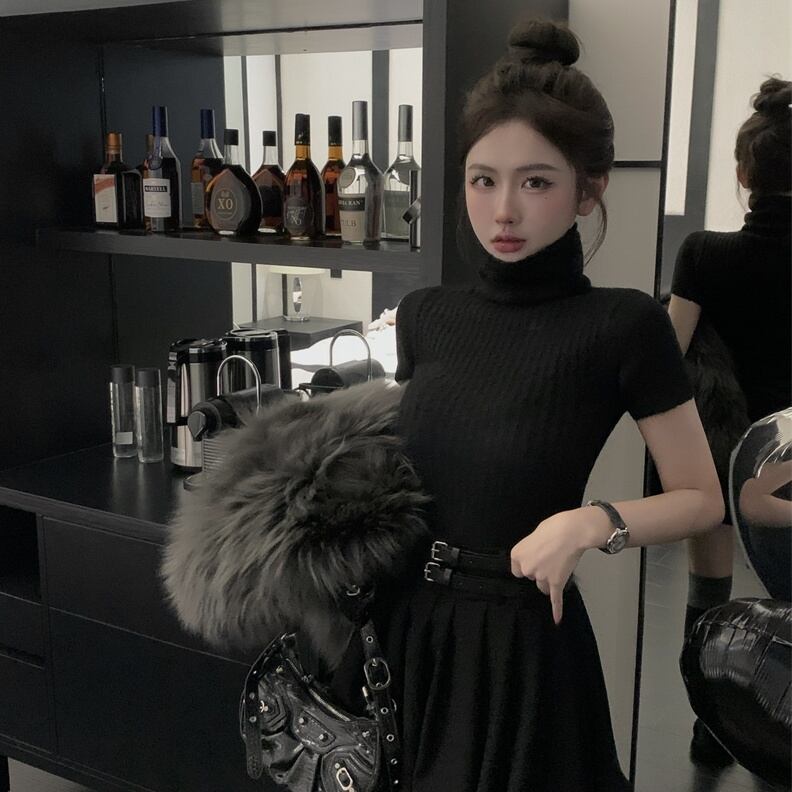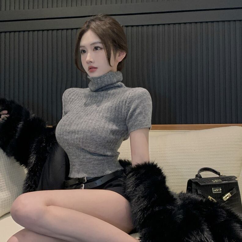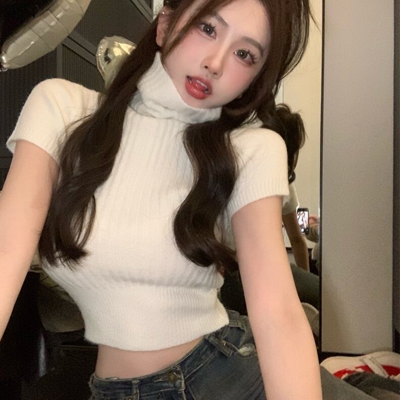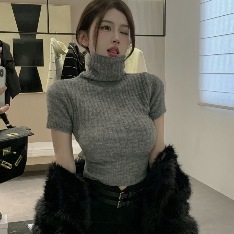 トップス ニットソー プルオーバー ショート丈 半袖 タートルネック ニット もこもこ かわいい 大人可愛い きれいめ シンプル 上品 おしゃれ かっこいい レトロ こなれ感 きちんと 個性的 主役級 存在感 抜け感 秋 冬 キュート ナチュラル ガーリー ベーシック メンズライク 清楚 無地 レディース 女性用 ママ OL 通勤 オフィス ビジネス 学生 通学 デート お出かけ お泊まり イベント 女子会 休日 アウトドア カフェ ショッピング レストラン コンパ レイヤード 重ね着 普段使い 着回し