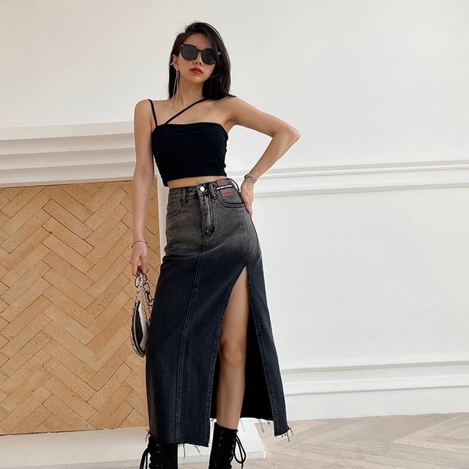 1本のストラップで片方だけ肩を出すワンショルダーデザインが、大人可愛くておしゃれな印象を与えます。