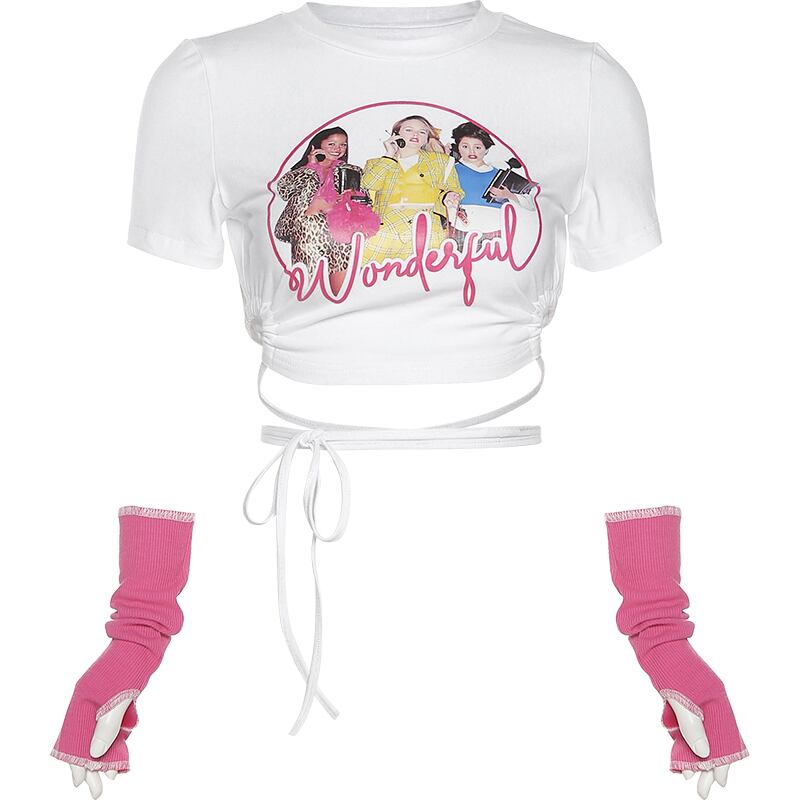 トップス Tシャツ カットソーショート丈 半袖 ラウンドネック アームウォーマー付き タイト プリント かわいい 大人可愛い きれいめ シンプル 上品 おしゃれ かっこいい レトロ ラフ ルーズ こなれ感 きちんと 個性的 主役級 存在感 抜け感 キュート ナチュラル ベーシック メンズライク レディース 女性用 OL 通勤 学生 通学 デート お出かけ お泊まり イベント 女子会 休日 アウトドア カフェ ショッピング レストラン コンパ レイヤード 重ね着 普段使い 着回し S M L XL