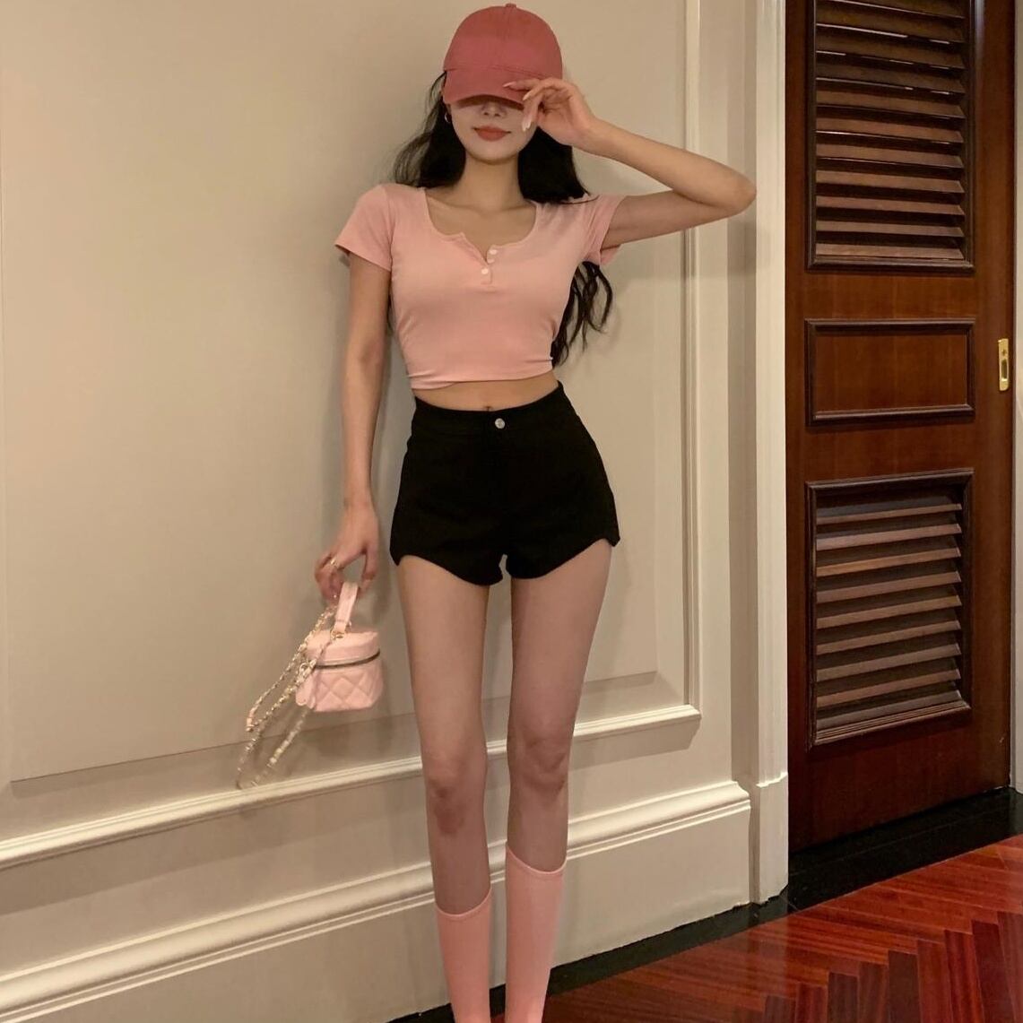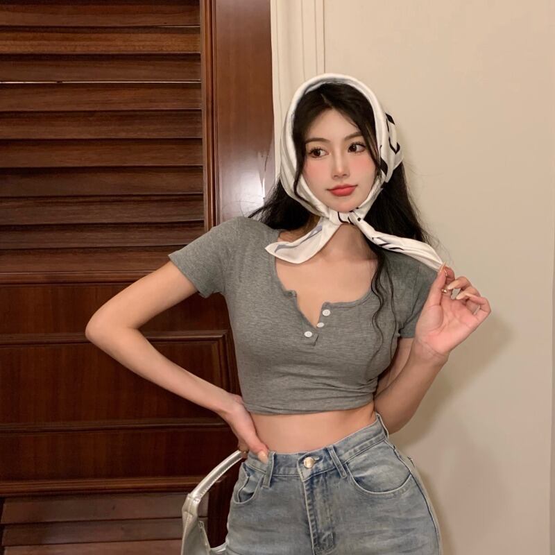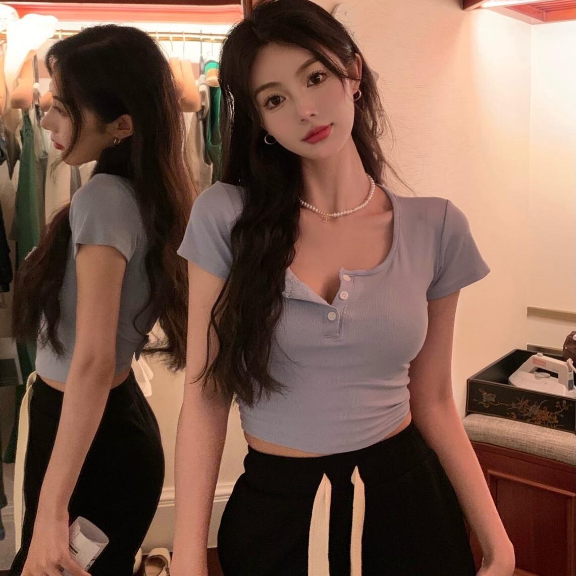 トップス Tシャツ カットソーショート丈 半袖 スクエアネック タイト ハーフボタン かわいい 大人可愛い きれいめ シンプル 上品 おしゃれ かっこいい レトロ ラフ ルーズ こなれ感 きちんと 個性的 主役級 存在感 抜け感 キュート ナチュラル ベーシック メンズライク セクシー レディース 女性用 OL 通勤 学生 通学 デート お出かけ お泊まり イベント 女子会 休日 アウトドア カフェ ショッピング レストラン コンパ レイヤード 重ね着 普段使い 着回し XS S M L モテ