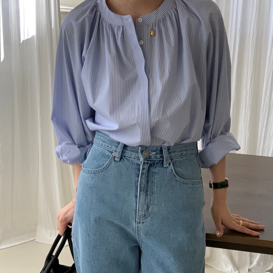 トップス ブラウス ミディアム丈 長袖 ボリューム袖 クルーネック 前開き ボタン 薄手 かわいい 大人可愛い きれいめ シンプル 上品 おしゃれ かっこいい レトロ こなれ感 きちんと 個性的 主役級 存在感 抜け感 春 夏 キュート ナチュラル ガーリー ベーシック フォーマル 清楚 レディース 女性用 ママ OL 通勤 オフィス 学生 通学 デート お出かけ お泊まり イベント 女子会 休日 カフェ ショッピング レストラン コンパ レイヤード 重ね着 普段使い 着回し S M L XL