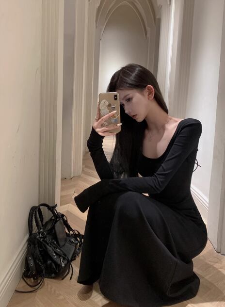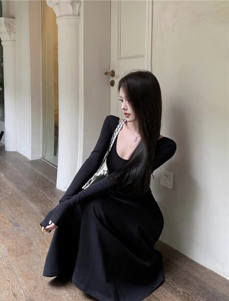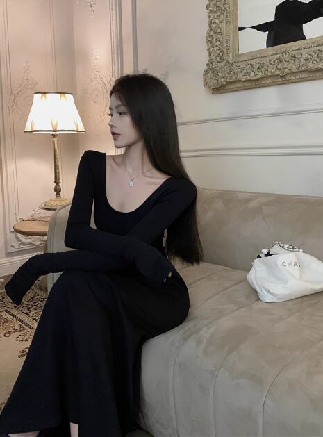 ドレス 衣装 ワンピースロング丈ワンピース タイトワンピース 二次会ドレス 演奏会ドレス ステージドレス 長袖 タイト マーメイドスカート 胸元 かわいい 大人可愛い きれいめ シンプル 大人 上品 おしゃれ かっこいい レトロ こなれ感 個性的 クール モード系 エレガント キュート モダン 主役級 存在感 ゴージャス 華やか セクシー 無地 レディース 女性用 イベント リゾート ホテル レストラン ファッション コーデ スタイル スレンダー 脚長 美脚 S M L ブラック