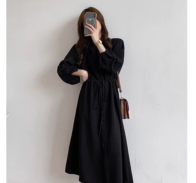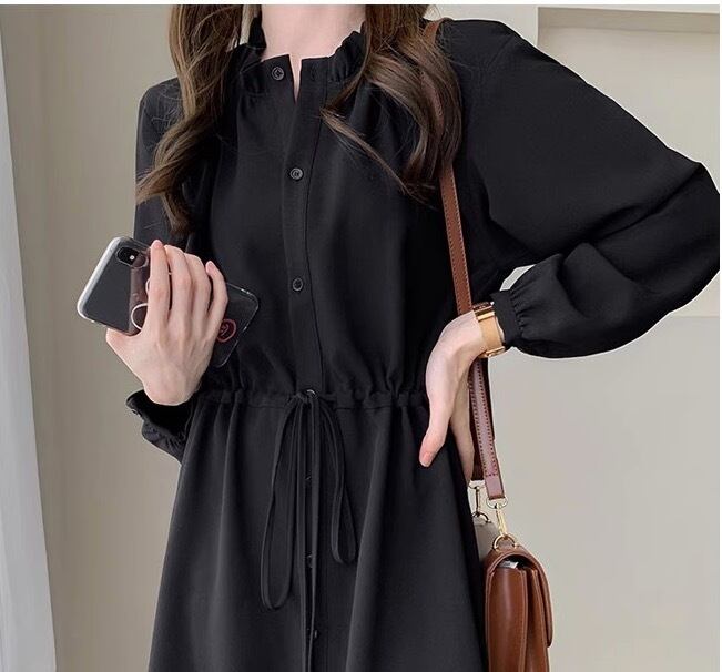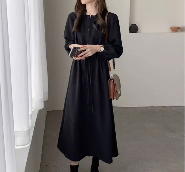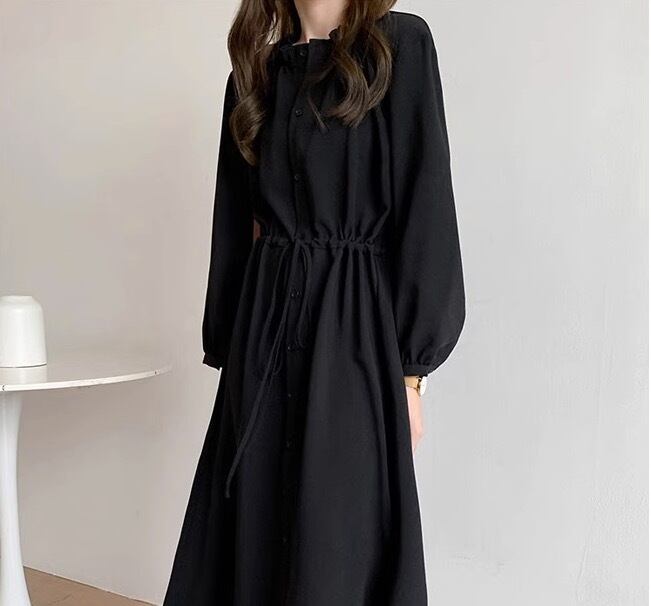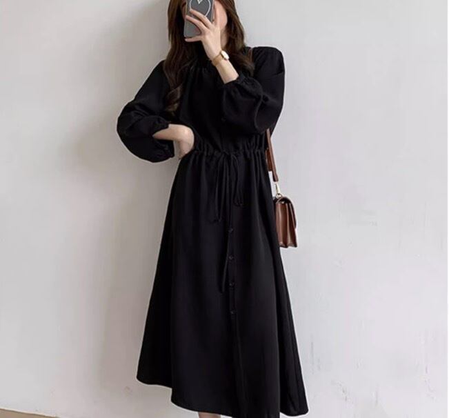 大人女子にぴったりのカジュアルシックなロングワンピースが登場しました!ウエスト切り替えデザインが女性らしいシルエットを演出し、フレアスリーブがエレガントな印象を与えます。スタンドカラーが首元をすっきり見せ、コーディネートを引き締めてくれます。ブラックカラーはどんなシーンにもマッチするので、デートや女子会、休日のお出かけに最適です。大人可愛い雰囲気を演出しながら、個性的なスタイルを楽しんでください。一枚で主役級の存在感を放ち、周囲を魅了すること間違いなし!モダンでシンプル、そして”キュート”な一枚をお楽しみください。