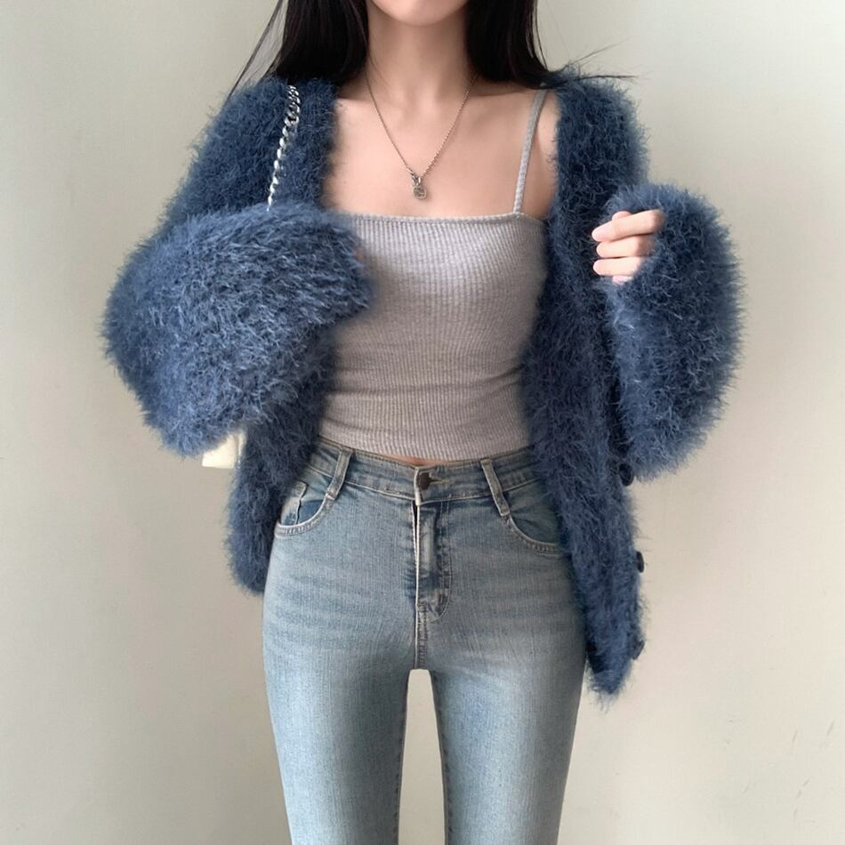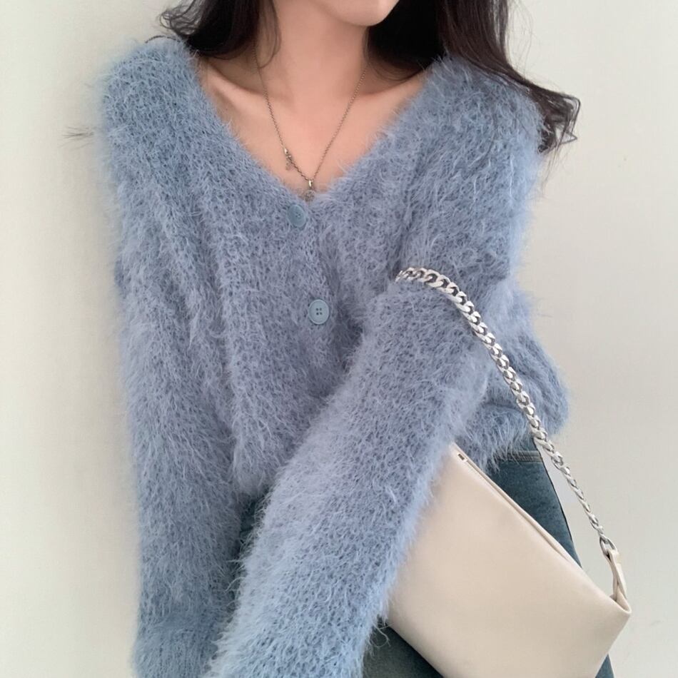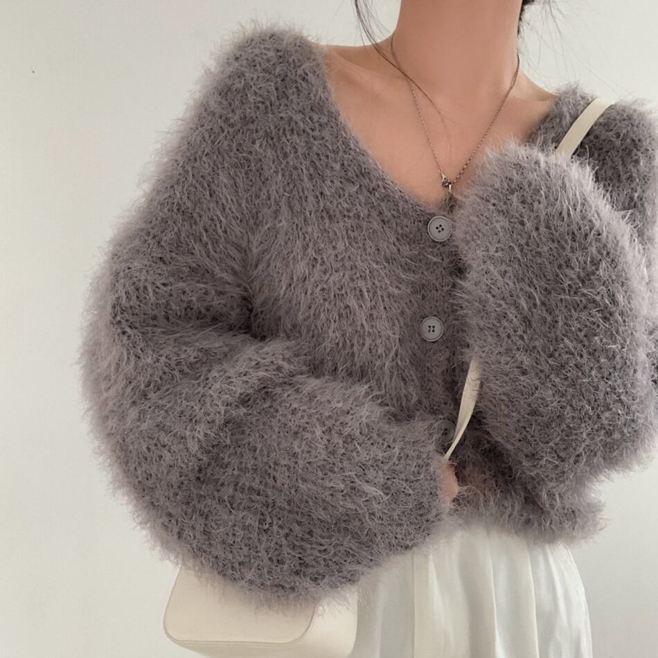 魅力満載のモヘアニットカーディガンが新登場!柔らかくてボリューム感のある袖が、大人女子の着こなしにぴったり。Vネックで首元もすっきり見え、前開きなので着脱もラクチンです。ふわふわモコモコの素材は触り心地も抜群で、冷えた季節にも暖かく、女子会やデート、休日のお出かけスタイルにも重宝します。色展開も豊富なので、お気に入りのカラーを見つけて、おしゃれを楽しんでください。