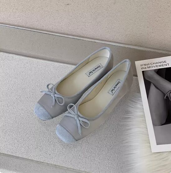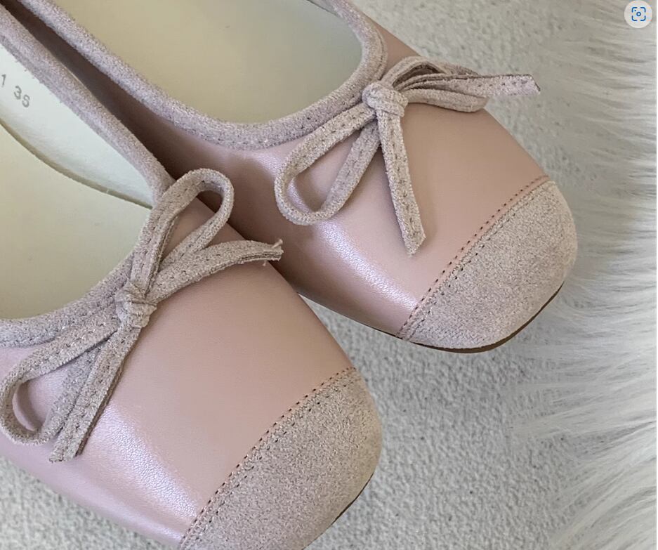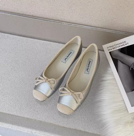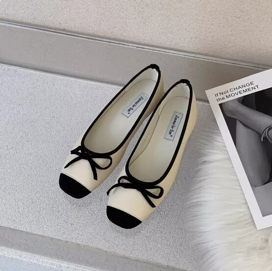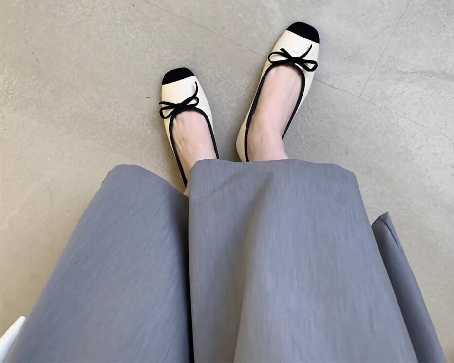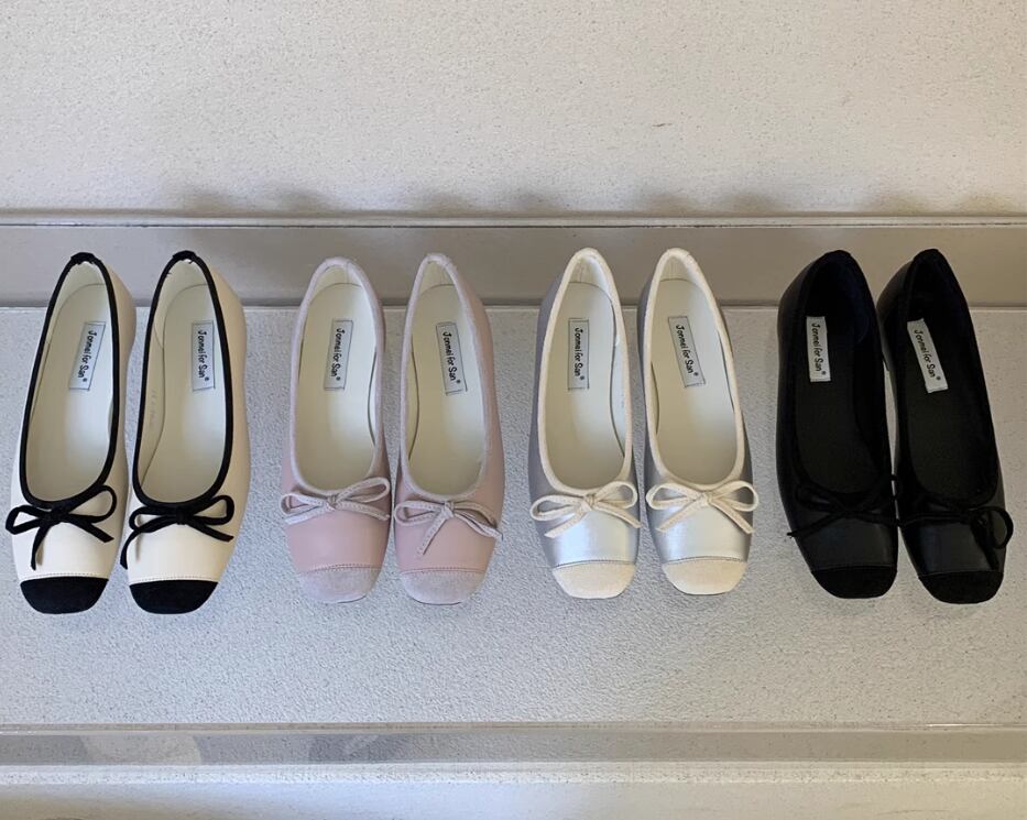 つま先の切り替えデザインとリボンが可愛いシンプルパンプス