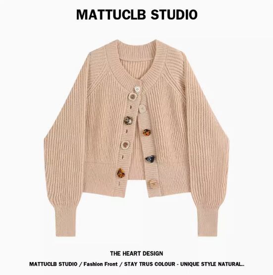 カラフルボタンニットカーディガン トップス ショート丈 袖あり 長袖 ボリューム袖 Vネック ストレート 切り替えデザイン 伸縮性 かわいい 大人可愛い シンプル カジュアル おしゃれ お洒落 こなれ感 個性的 無地 春 秋 10代 20代 30代 40代 レディース 女性用 お出かけ 休日 着回し 普段使い 重ね着 楽ちん S M L 黒 ブラック ベージュ