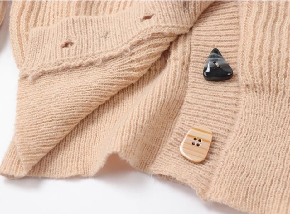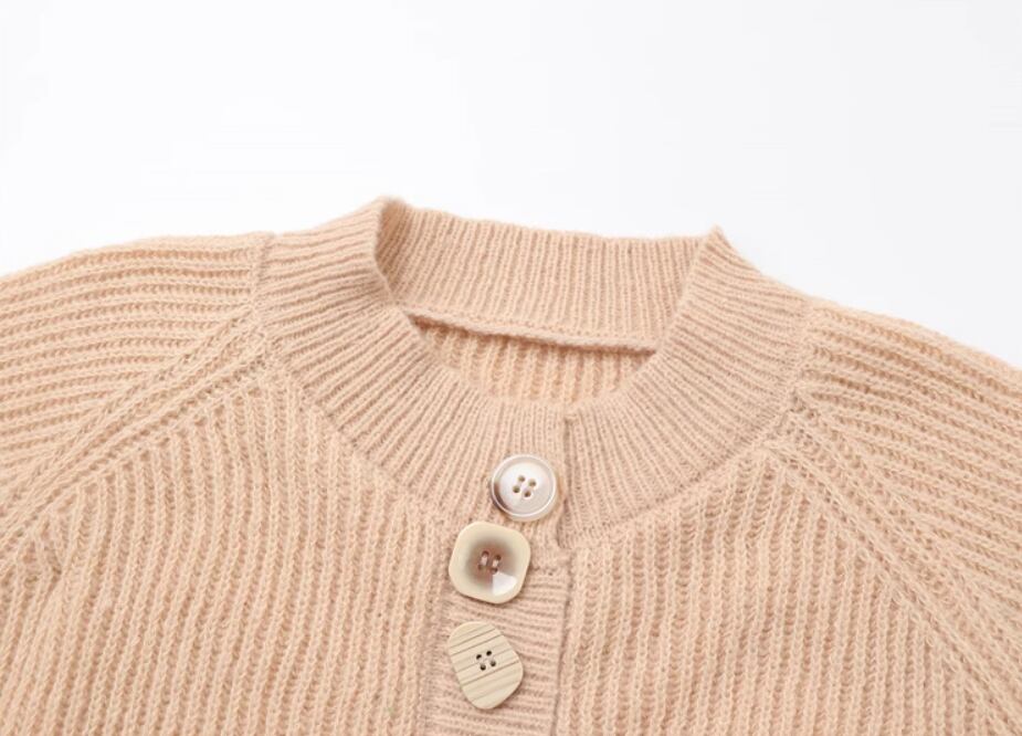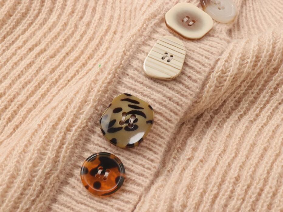 フロントにあしらわれたボタンがアクセントのニットカーディガン