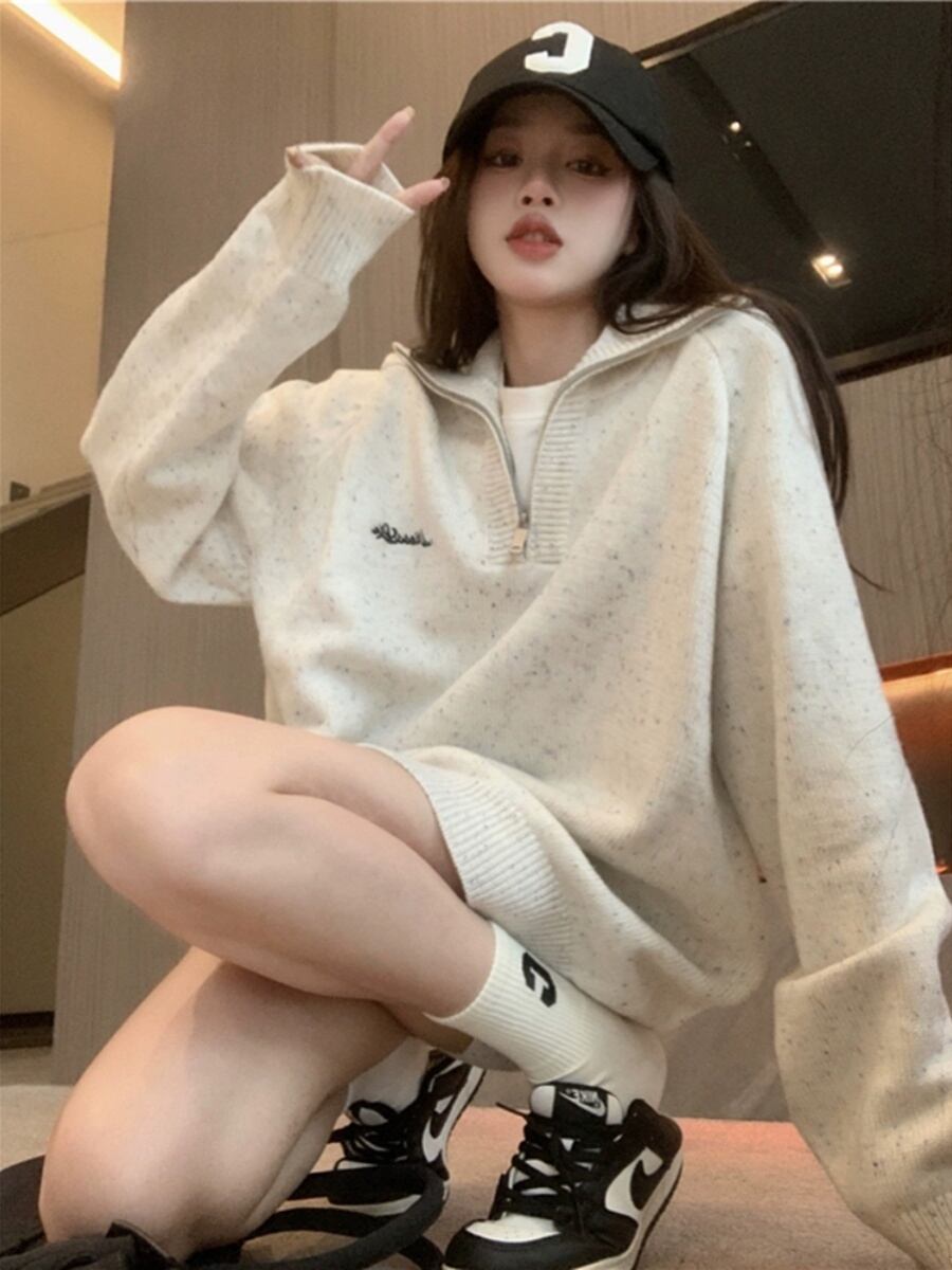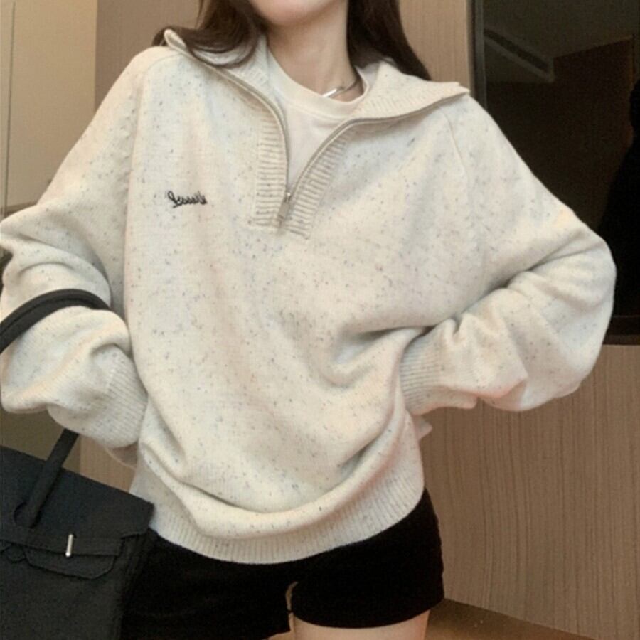 レディース ニット セーター 長袖 ハーフジップカラー ストレート かわいい 大人可愛い きれいめ シンプル カジュアル おしゃれ レトロ こなれ感 ラフ ガーリー ルーズ ラブリー キュート 無地 秋 冬 学生 学校 通学 デート お出かけ 女子会 ショッピング カフェ 韓国 コーデ 楽ちん 体型カバー 普段使い 着回し モテ トレンド 流行 インスタ映え S M L XL 2XL 3XL 大きいサイズ ゆったり ホワイト ネイビー