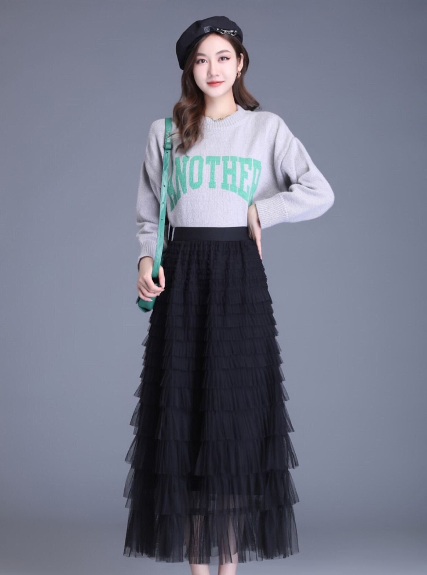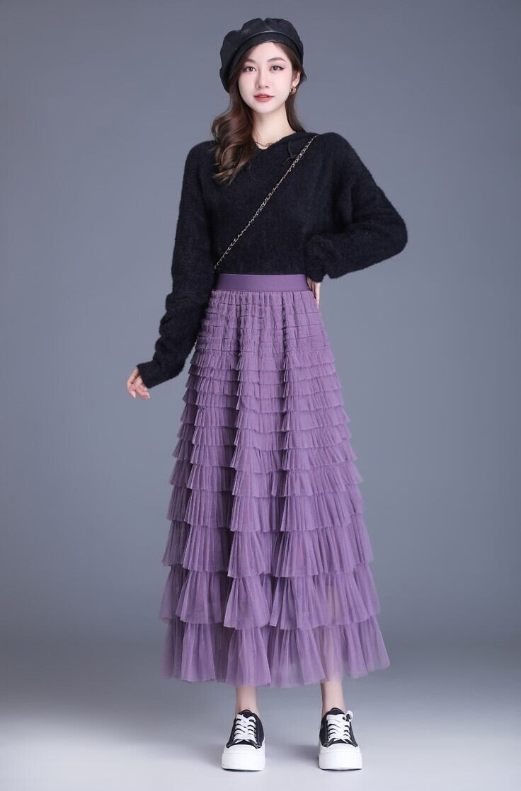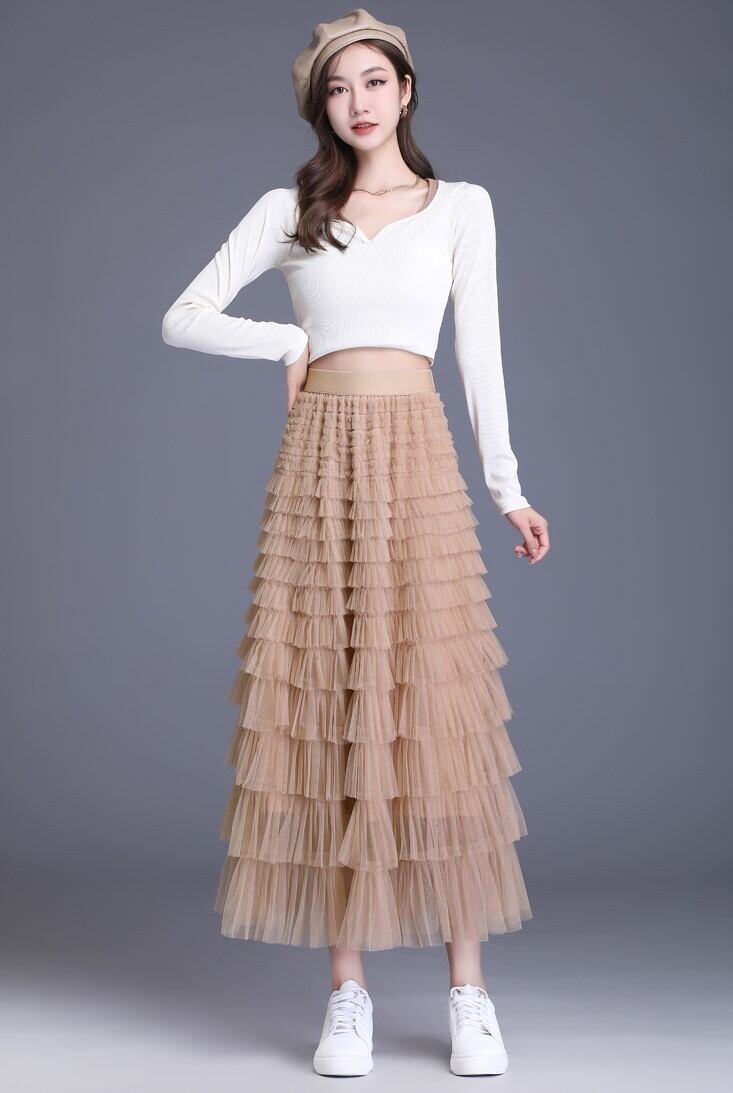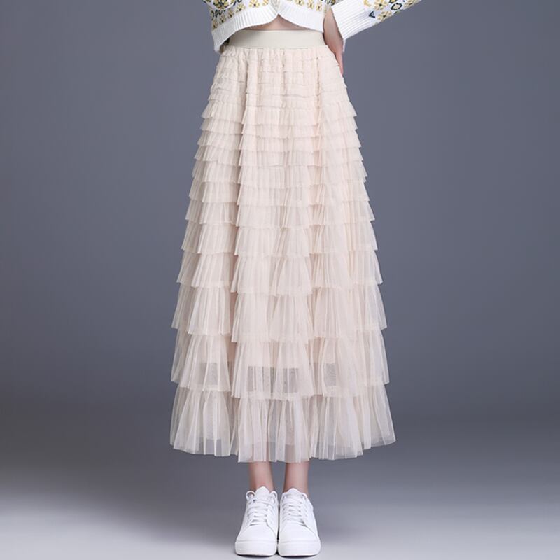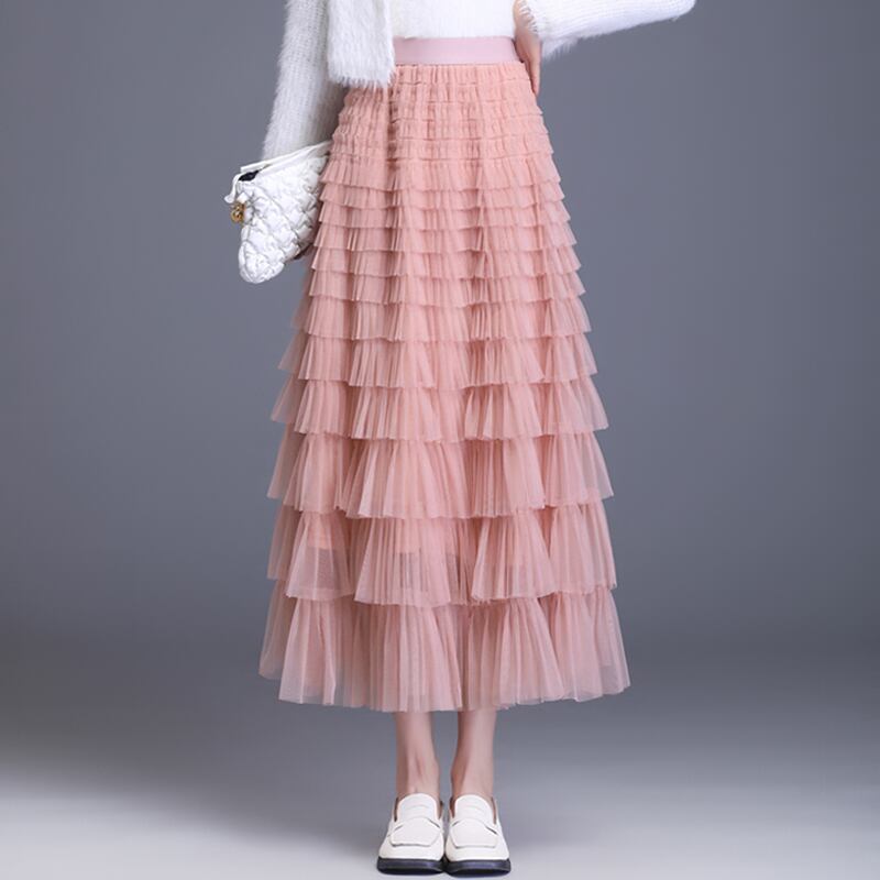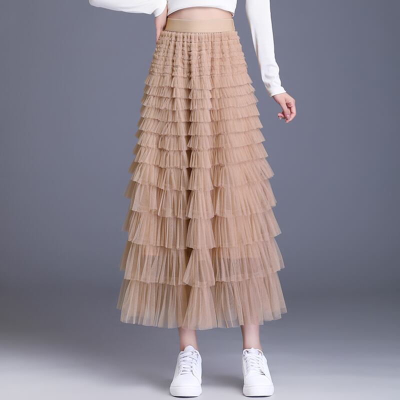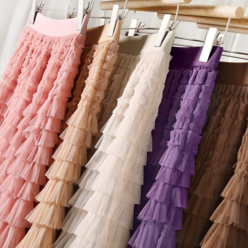 レディース スカート ケーキスカート ミモレ丈 Aライン シフォン フリル ハイウエスト ウエストゴム かわいい 大人可愛い きれいめ シンプル カジュアル おしゃれ レトロ こなれ感 ラフ ガーリー ルーズ ラブリー キュート 無地 春 秋 学生 学校 通学 デート お出かけ 女子会 ショッピング カフェ 韓国 コーデ 楽ちん 体型カバー 普段使い 着回し モテ トレンド 流行 インスタ映え ゆったり フリーサイズ ブラック ブラウン カーキ ピンク アプリコット パープル