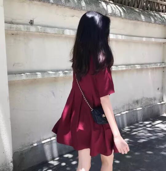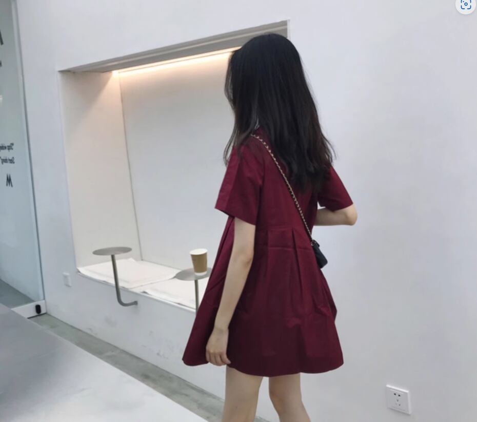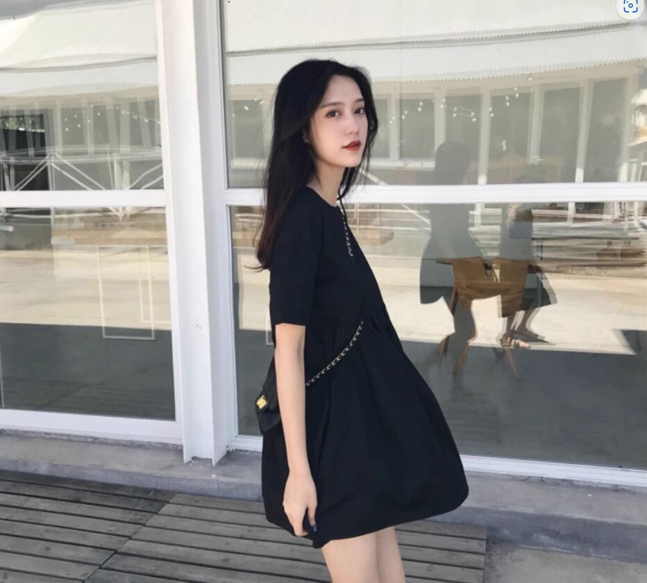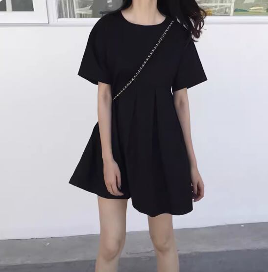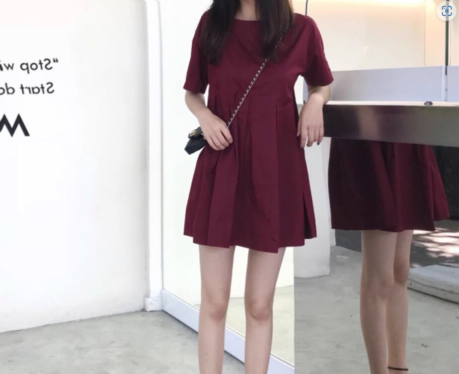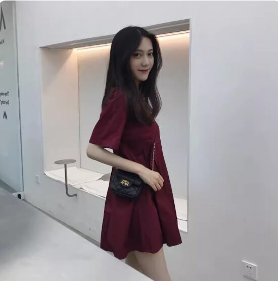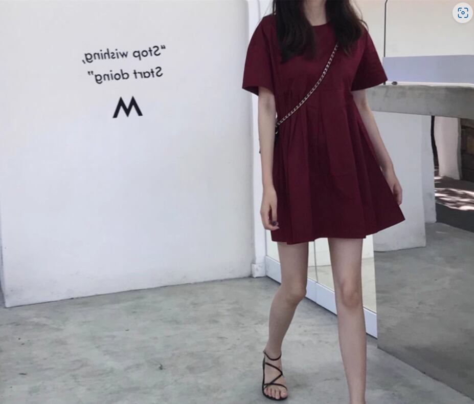 ウエストタックミニワンピース ミニ丈 袖あり 半袖 ラウンドネック Aライン かわいい 大人可愛い シンプル カジュアル おしゃれ お洒落 無地 春 夏 10代 20代 30代 レディース 女性用 ママ マタニティ デート お出かけ 休日 着回し 普段使い 楽ちん モテ 美脚 脚長 S M L XL 黒 ブラック ブルゴーニュ