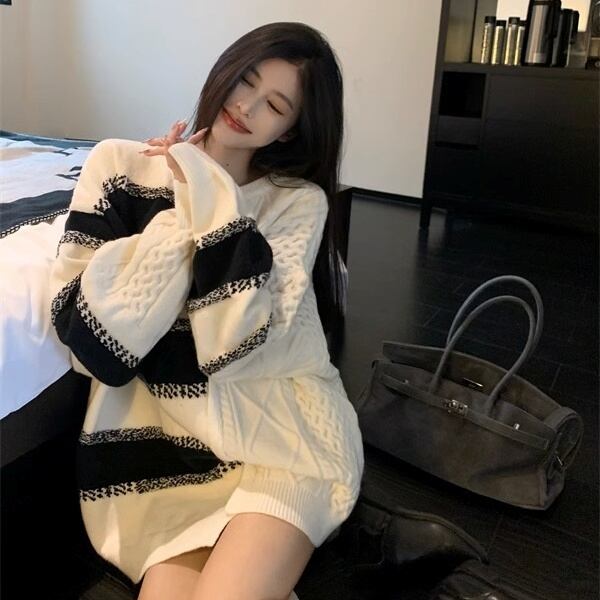 トップス セーター プルオーバー ミディアム丈 長袖 ラウンドネック 萌袖 かわいい 大人可愛い きれいめ シンプル 上品 おしゃれ かっこいい レトロ ラフ ルーズ こなれ感 個性的 主役級 存在感 抜け感 秋 冬 キュート ナチュラル ベーシック フェミニン レディース 女性用 ママ マタニティ OL 通勤 オフィス 学生 通学 デート お出かけ お泊まり イベント 女子会 休日 カフェ ショッピング レストラン コンパ レイヤード 重ね着 普段使い 着回し S M L XL ゆったり 暖かい