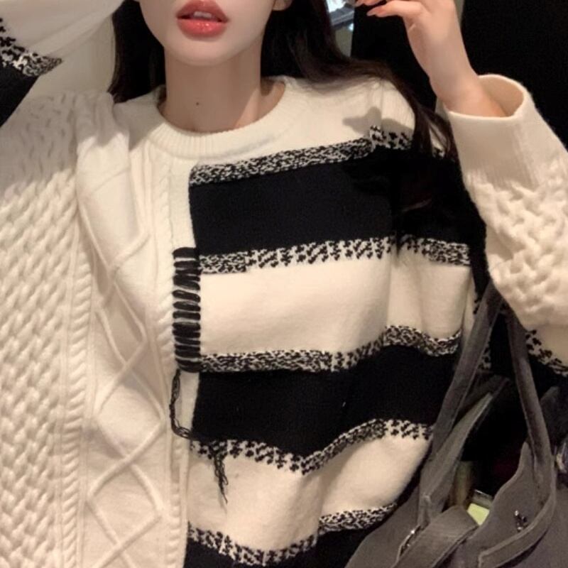 このオーバーサイズのセーターは、女性らしさを際立たせる一枚です。