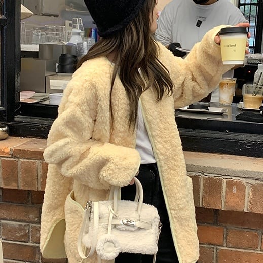 もこもことしたふわふわの素材で、大人可愛い雰囲気を演出してくれます。