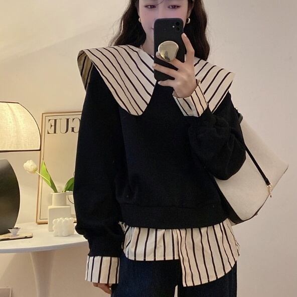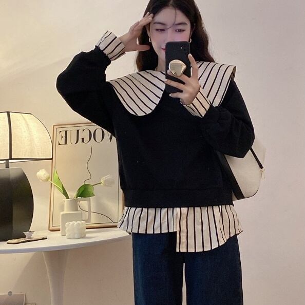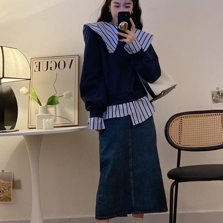 トップス セーター プルオーバー ミディアム丈 長袖 ビックカラー 重ね着風 アシンメトリー かわいい 大人可愛い きれいめ シンプル 上品 おしゃれ かっこいい レトロ ラフ こなれ感 個性的 主役級 存在感 抜け感 秋 冬 キュート ナチュラル ベーシック フェミニン 無地 レディース 女性用 ママ マタニティ OL 通勤 オフィス 学生 通学 デート お出かけ お泊まり イベント 女子会 休日 カフェ ショッピング レストラン コンパ レイヤード 重ね着 普段使い 着回し M L XL 4XL