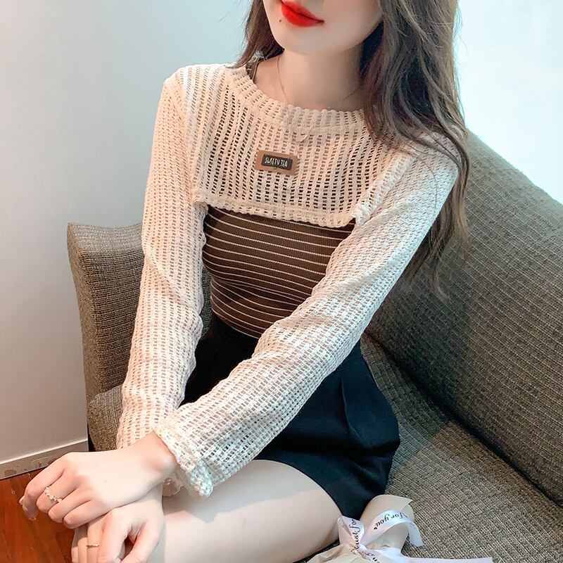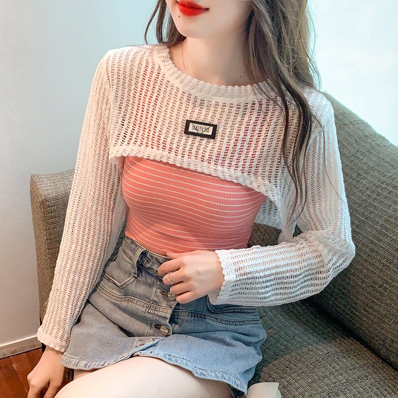 2点セット トップス 透かし編み ショート丈 長袖 ラウンドネック タンクトップ かわいい 大人可愛い きれいめ シンプル 上品 おしゃれ かっこいい レトロ ラフ こなれ感 個性的 主役級 存在感 抜け感 秋 冬 キュート ナチュラル ベーシック フェミニン エレガント 清楚 セクシー 無地 レディース 女性用 ママ OL 通勤 オフィス 学生 通学 デート お出かけ お泊まり イベント 女子会 休日 カフェ ショッピング レストラン コンパ レイヤード 重ね着 普段使い 着回し S M L XL