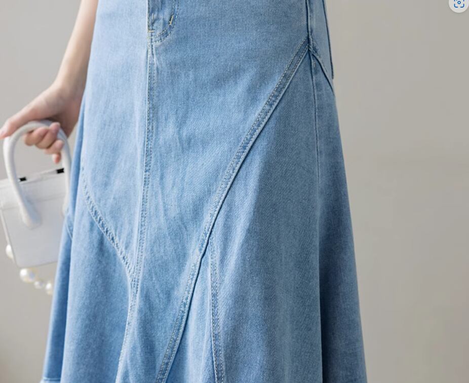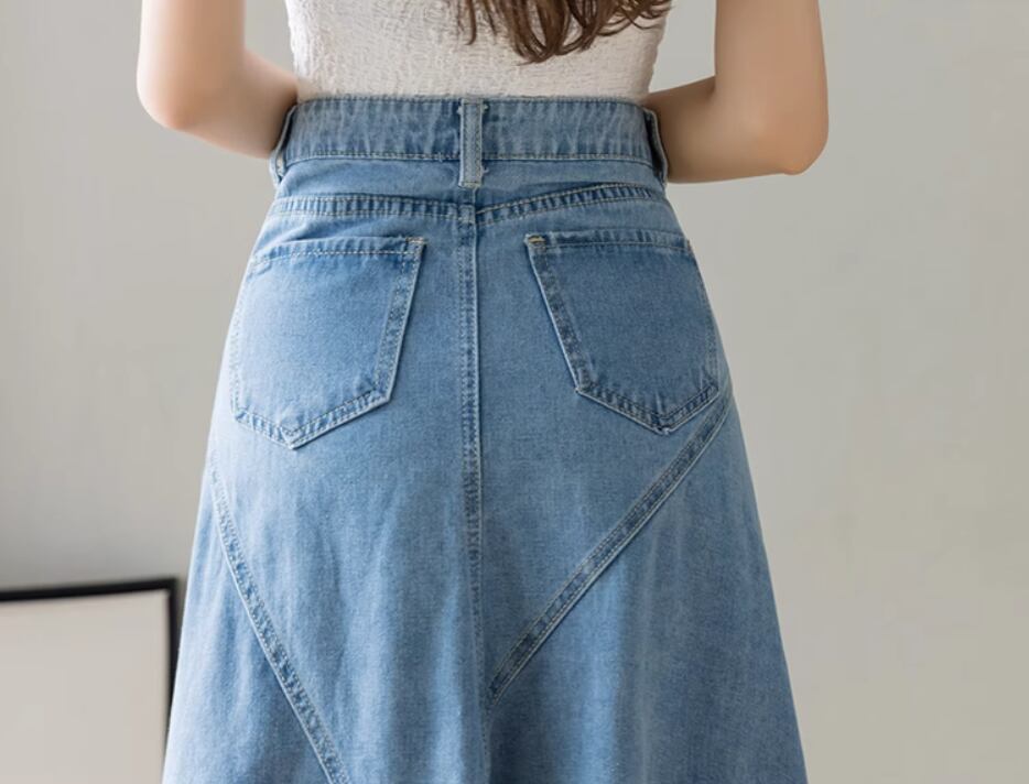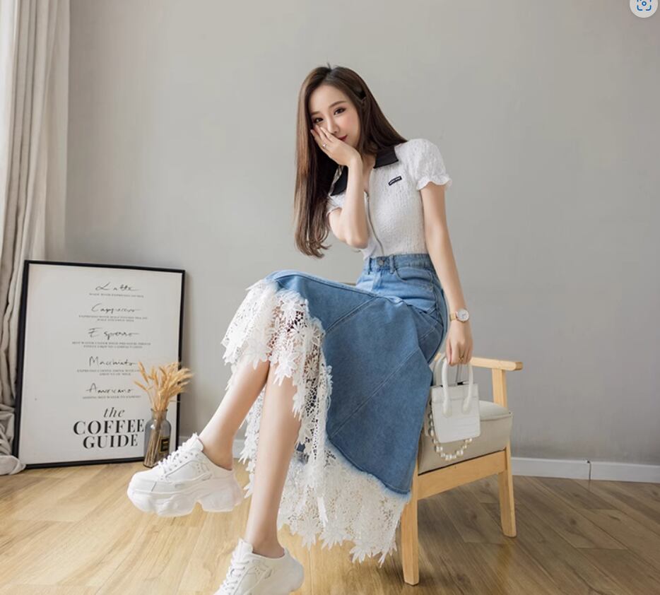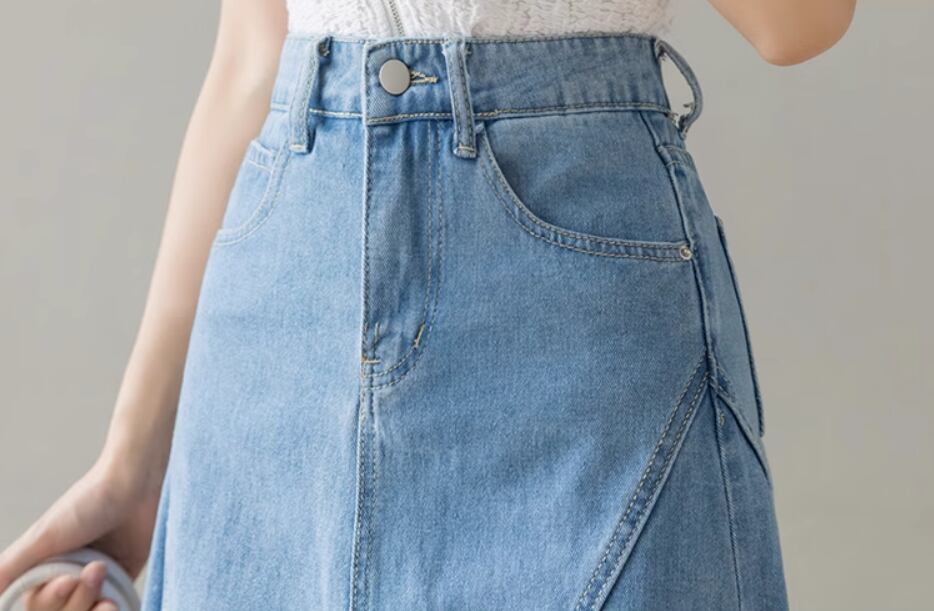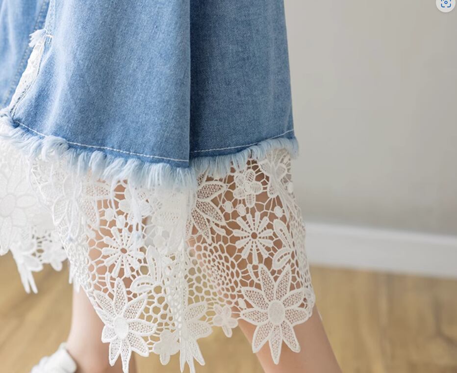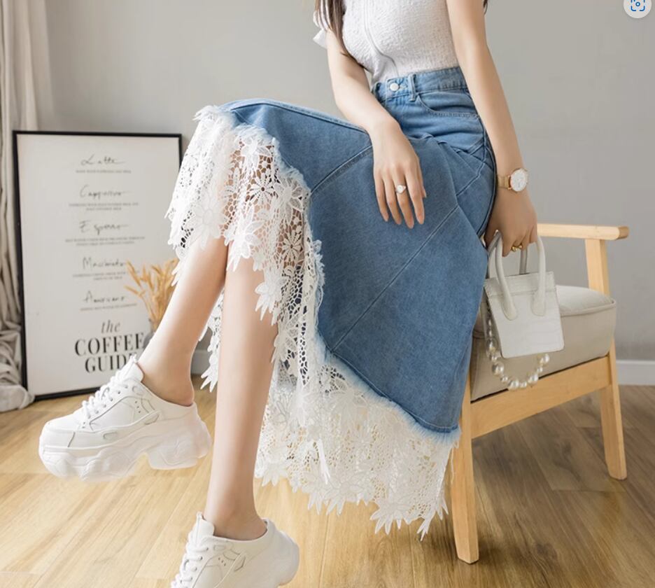 デニム×レースのドッキングデザインがおしゃれなミディアムスカート