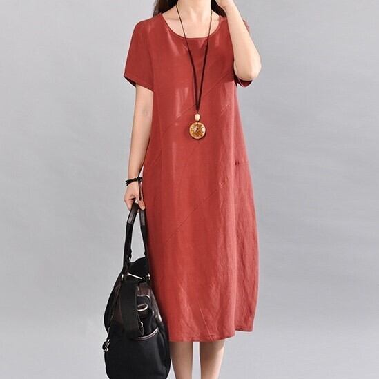 ワンピース レディース 膝下 ミモレ 半袖 ラウンドネック ワイド フレア ストレート 大人可愛い シンプル カジュアル 上品 おしゃれ エスニック こなれ感 ラフ ルーズ エレガント 抜け感 キュート ナチュラル 無地 夏 授業参観 ミーティング ママ OL 学生 デート お出かけ リゾート 旅行 海 プール ビーチ 女子会 休日 バカンス 高原 ショッピング 楽ちん 体型カバー 脚長 普段使い 着回し 定番 M L XL 2XL 大きいサイズ ビッグ ゆったり ゆる レッド ネイビー 大人カラー