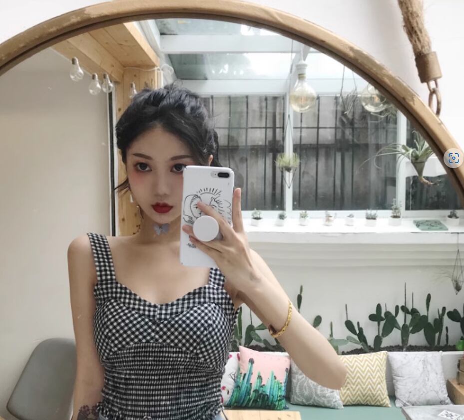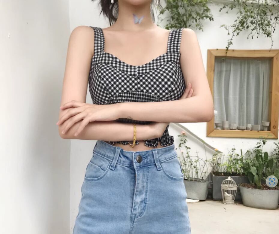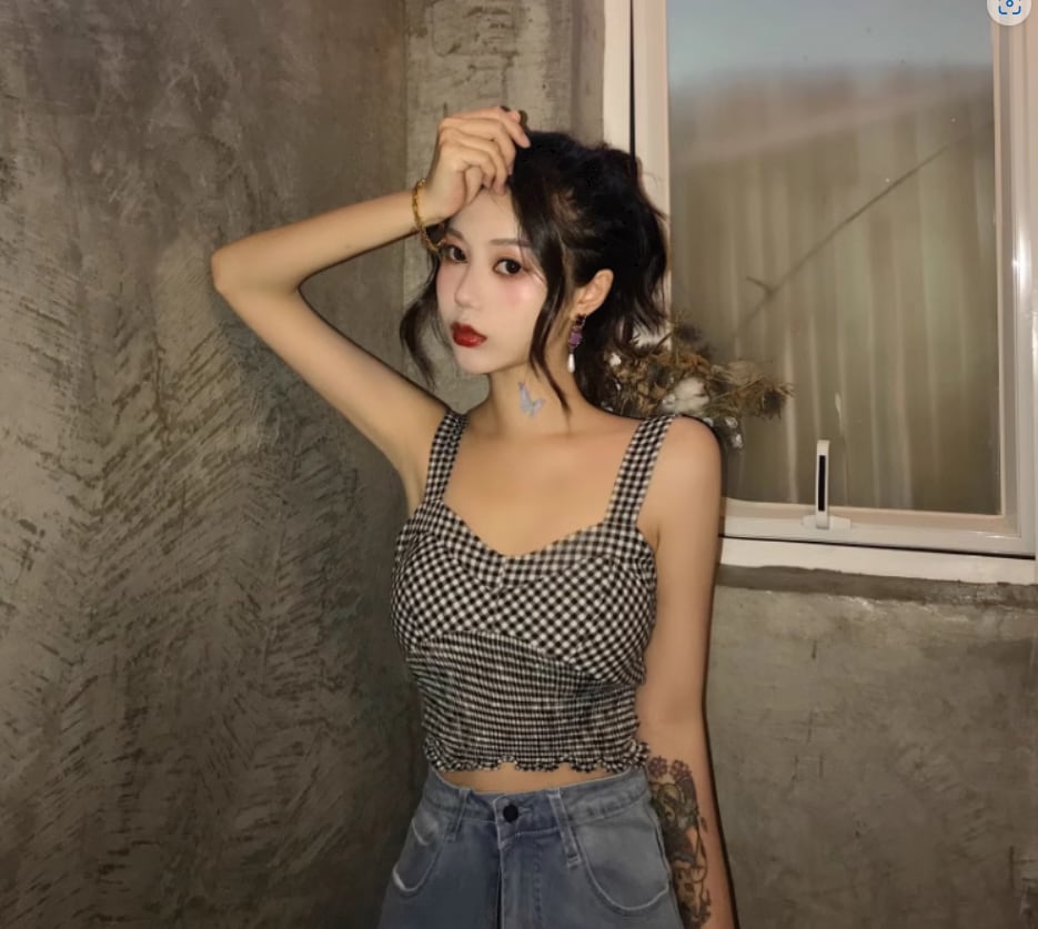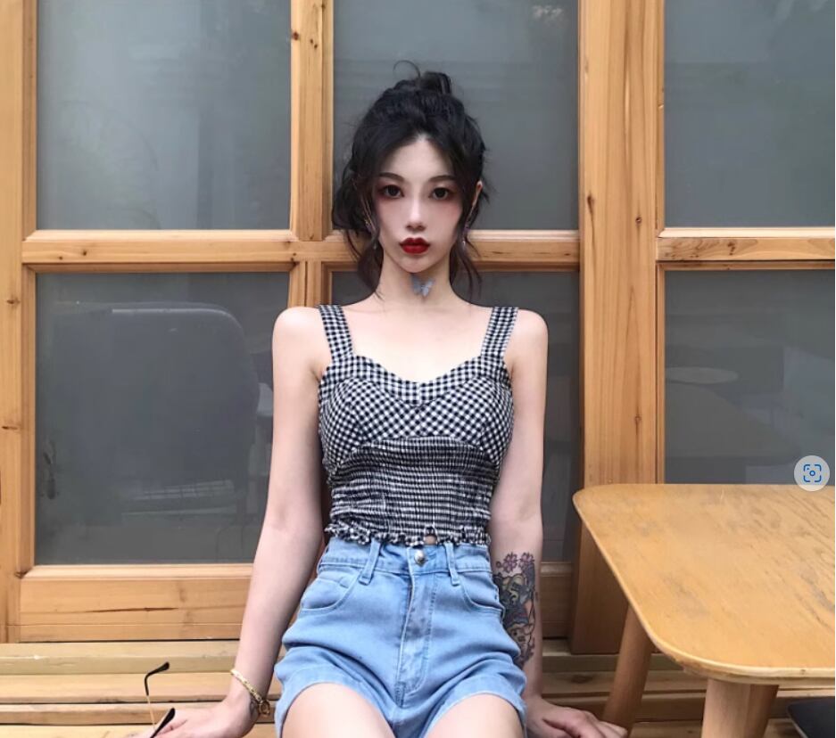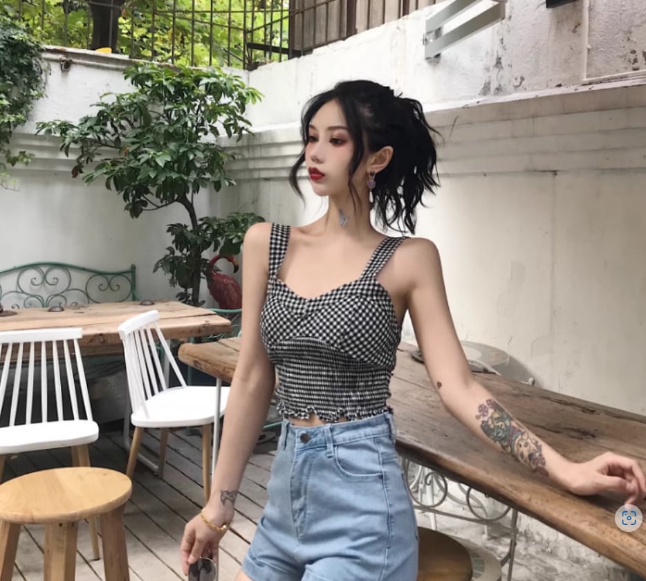 チェック柄が可愛い裾シャーリングキャミソール