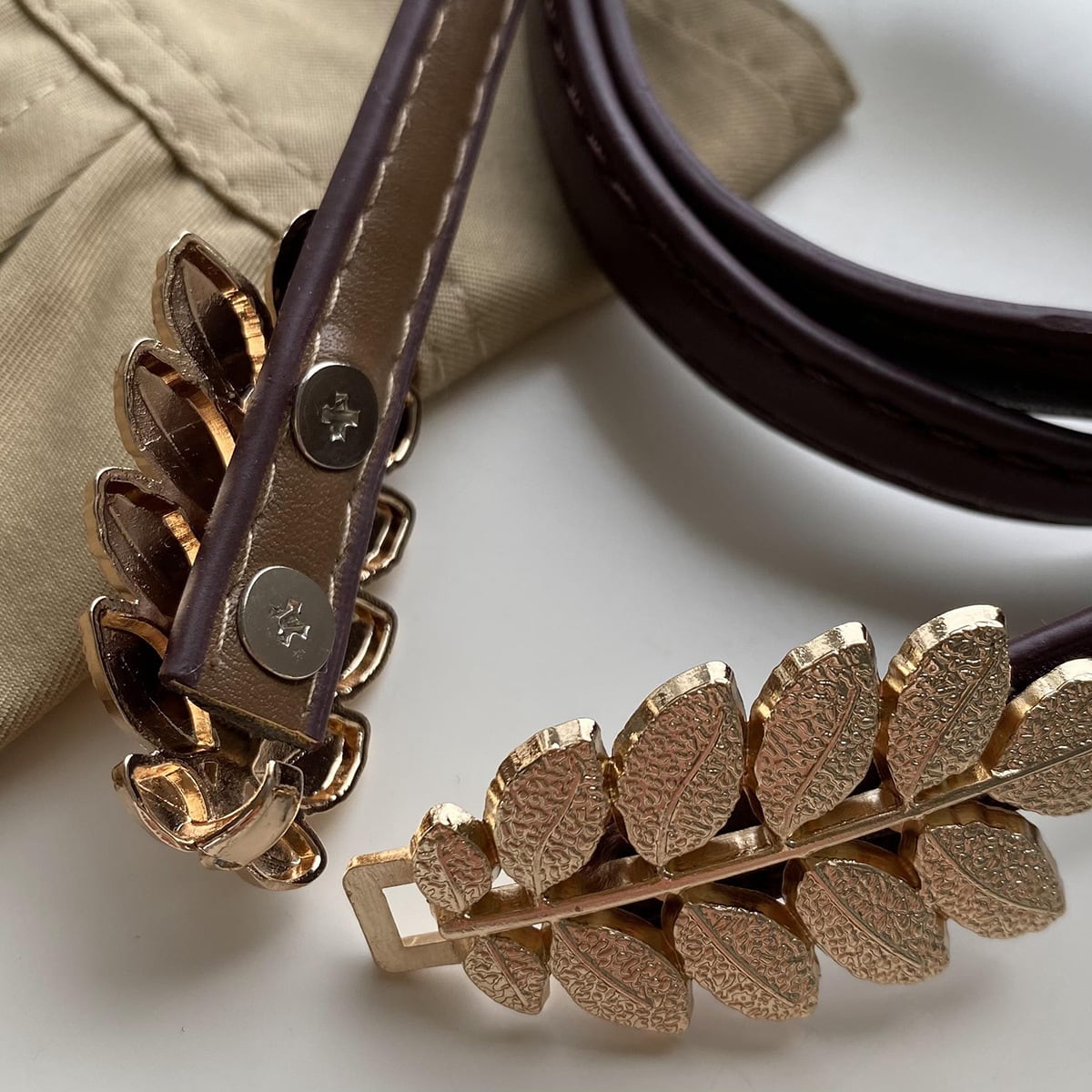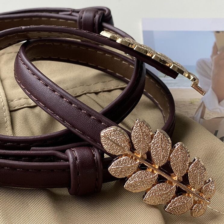リーフモチーフが華やかなアクセントをプラスする、上品な革ベルトのご紹介です。