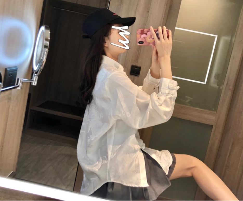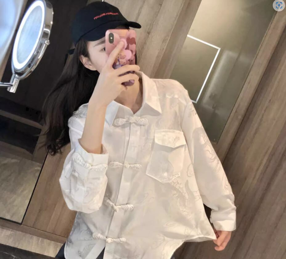 チャイナ風デザインと柄が個性的な長袖シャツ