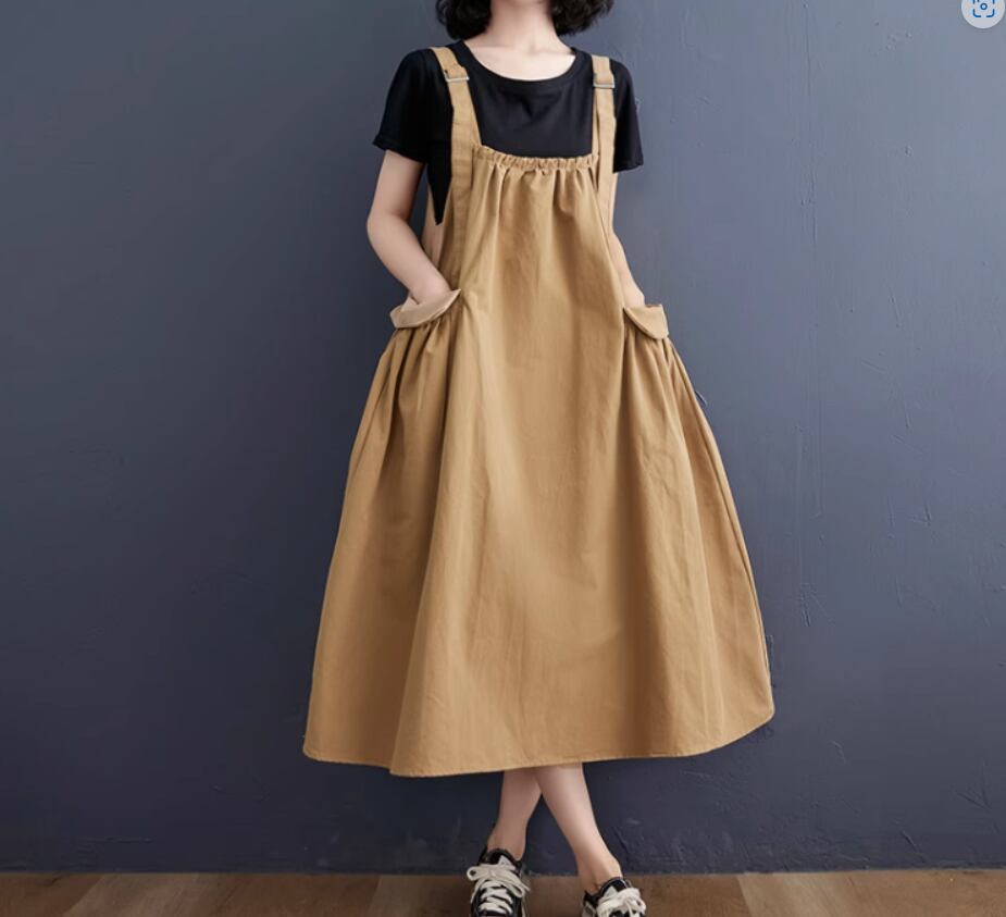 ワンピース 膝下 袖なし ノースリーブ スクエアネック Aライン ポケット かわいい シンプル カジュアル おしゃれ お洒落 ガーリー 無地 春 夏 秋 10代 20代 30代 レディース 女性用 ママ マタニティ デート お出かけ 休日 旅行 着回し 普段使い 重ね着 楽ちん 体系カバー M L XL 2XL 黒 ブラック カーキ