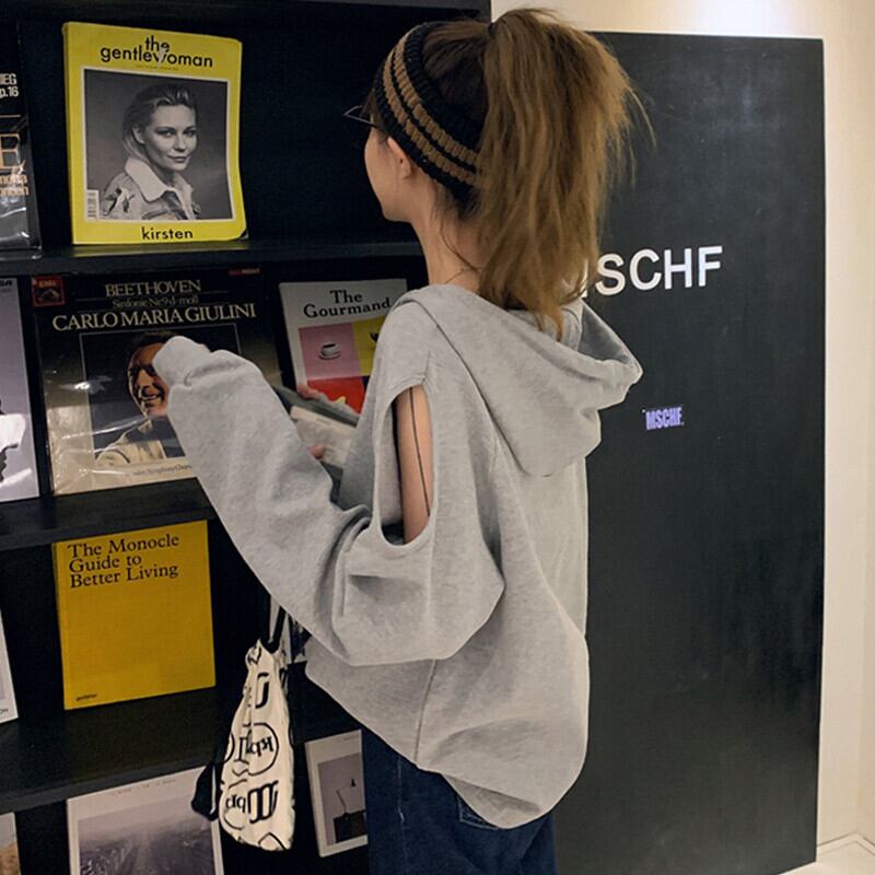 女性らしさとカジュアルな要素をミックスした、肩開きデザインが魅力のパーカープルオーバー。