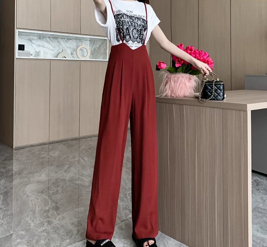 オールインワン サロペット ロング丈 ストレート ハイウエスト かわいい 大人可愛い きれいめ シンプル カジュアル 上品 おしゃれ お洒落 かっこいい 大人女子 こなれ感 とろみ感 無地 春 夏 秋 冬 オールシーズン 10代 30代 40代 レディース 女性用 ママ デート お出かけ 女子会 休日 着回し 普段使い 楽ちん S M L XL 黒 ブラック アプリコット ブルゴーニュ