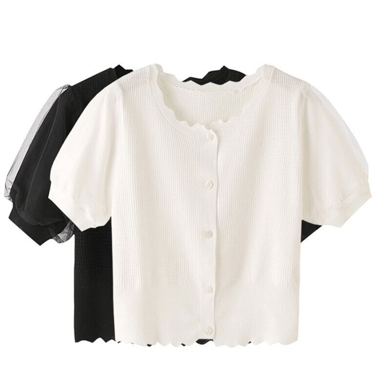 レディース トップス セーター カーディガン ショート 半袖 ラウンドネック スリム 細身 ストレート フェミニン レース ボタン 薄手 かわいい 大人可愛い きれいめ シンプル カジュアル 上品 おしゃれ こなれ感 ラフ ガーリー エレガント ラブリー キュート 無地 夏 通勤 学生 学校 通学 デート お出かけ 女子会 ショッピング カフェ 韓国 コーデ 体型カバー 普段使い 着回し モテ トレンド 流行 インスタ映え S M L XL ゆったり ホワイト ブラック