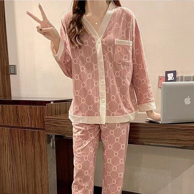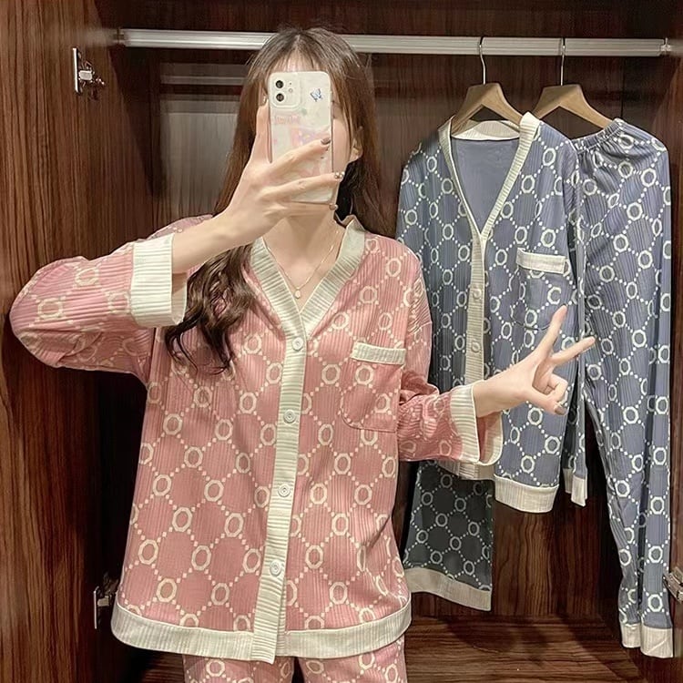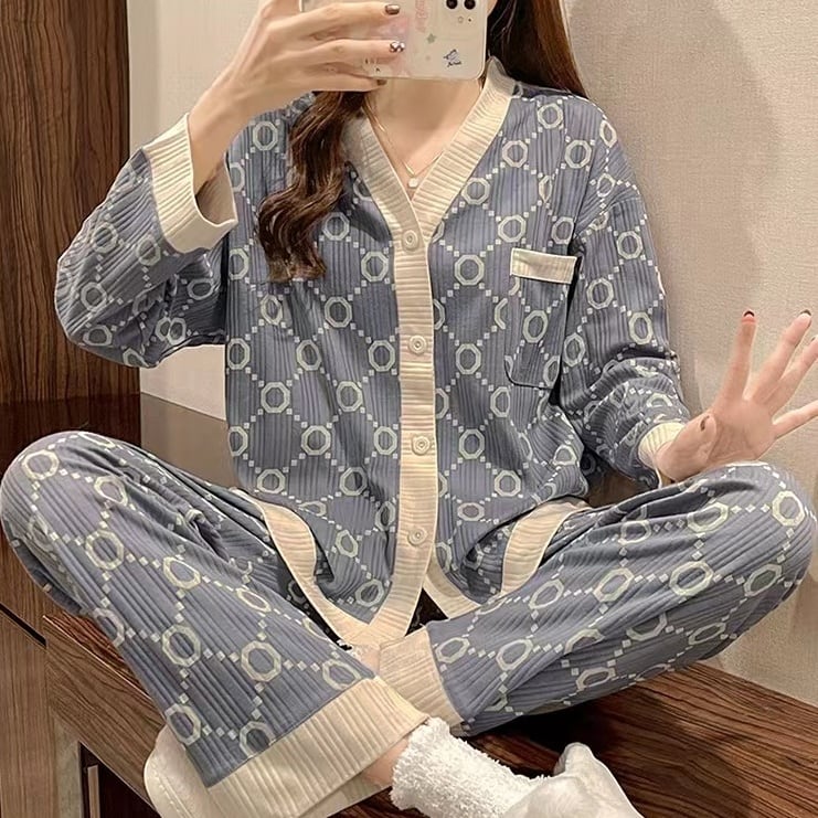 2点セット ナイトウエア パジャマ 上下セット 長袖 Vネック 前開き ボタン 胸ポケット 長ズボン ロングパンツ ウエストゴム ルームウエア 部屋着 かわいい 大人可愛い きれいめ シンプル 上品 おしゃれ かっこいい こなれ感 きちんと ラフ ルーズ 個性的 主役級 存在感 抜け感 オールシーズン シーズンレス キュート ナチュラル ベーシック メンズライク ガーリー デート お出かけ お泊まり イベント 女子会 休日 旅行 普段使い 着回し M L XL 2XL ゆったり ゆる 楽ちん