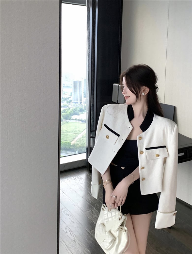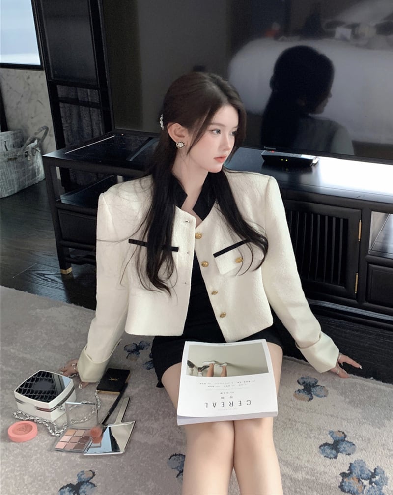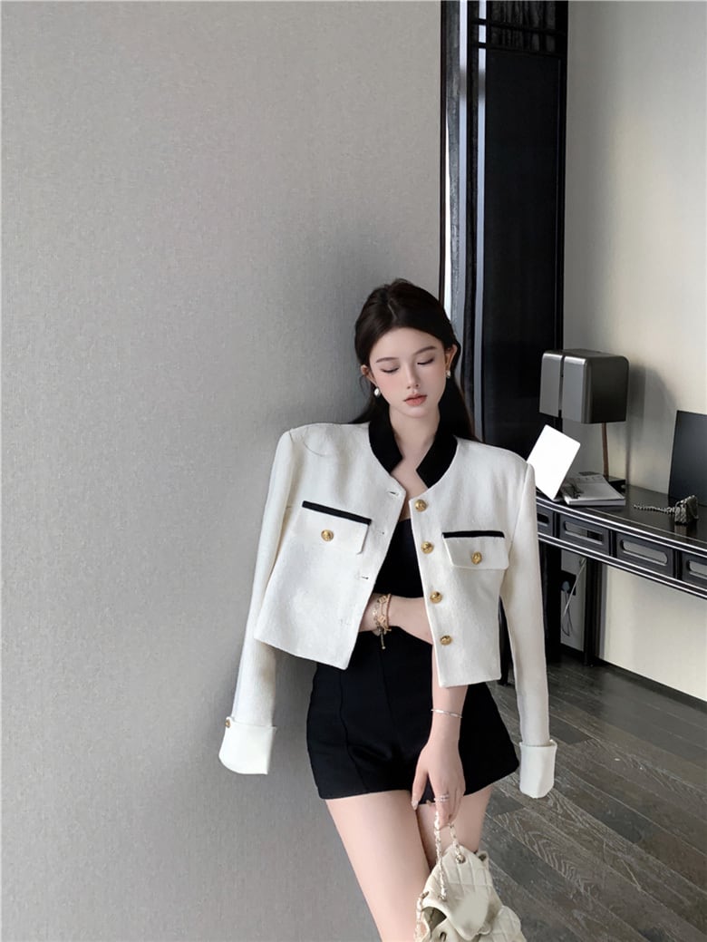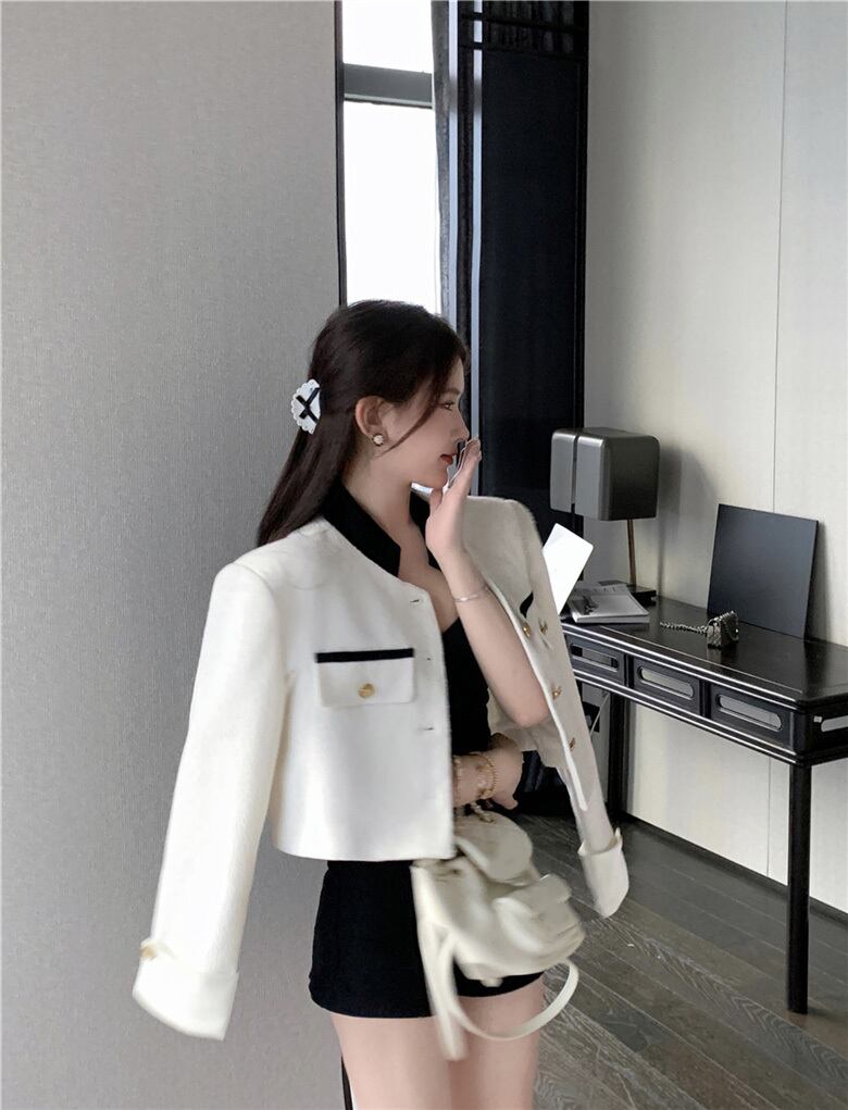 レディース ジャケット 羽織 長袖 スタンドカラー ショート丈 スリム 細身 シングルブレスト ボタン かわいい 大人可愛い きれいめ シンプル カジュアル 上品 おしゃれ ガーリー エレガント ラブリー キュート 無地 春 謝恩会 通勤 学生 学校 通学 デート お出かけ パーティー イベント 女子会 ショッピング 韓国 コーデ 体型カバー 普段使い 着回し モテ トレンド 流行 インスタ映え S M L ホワイト
