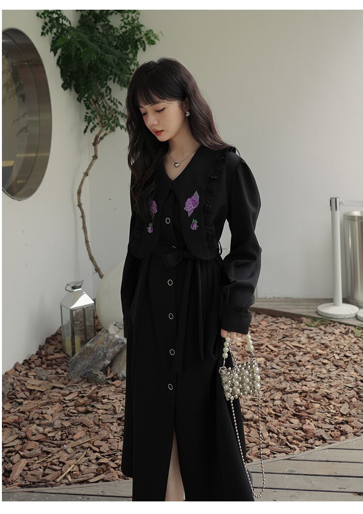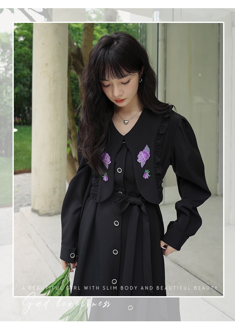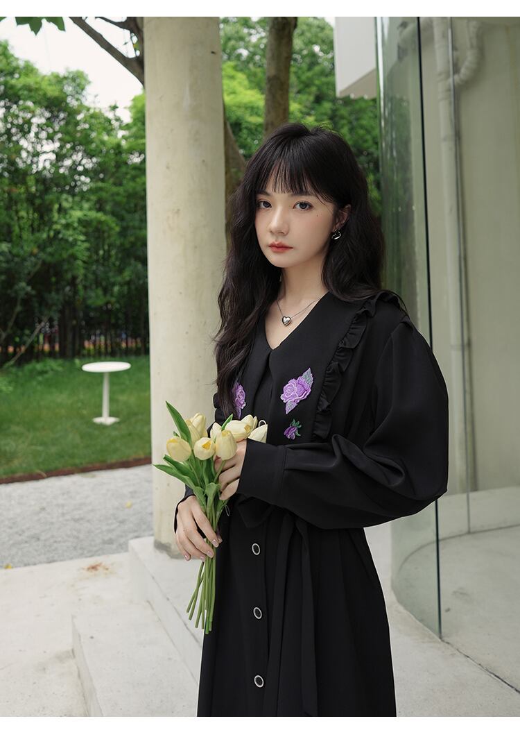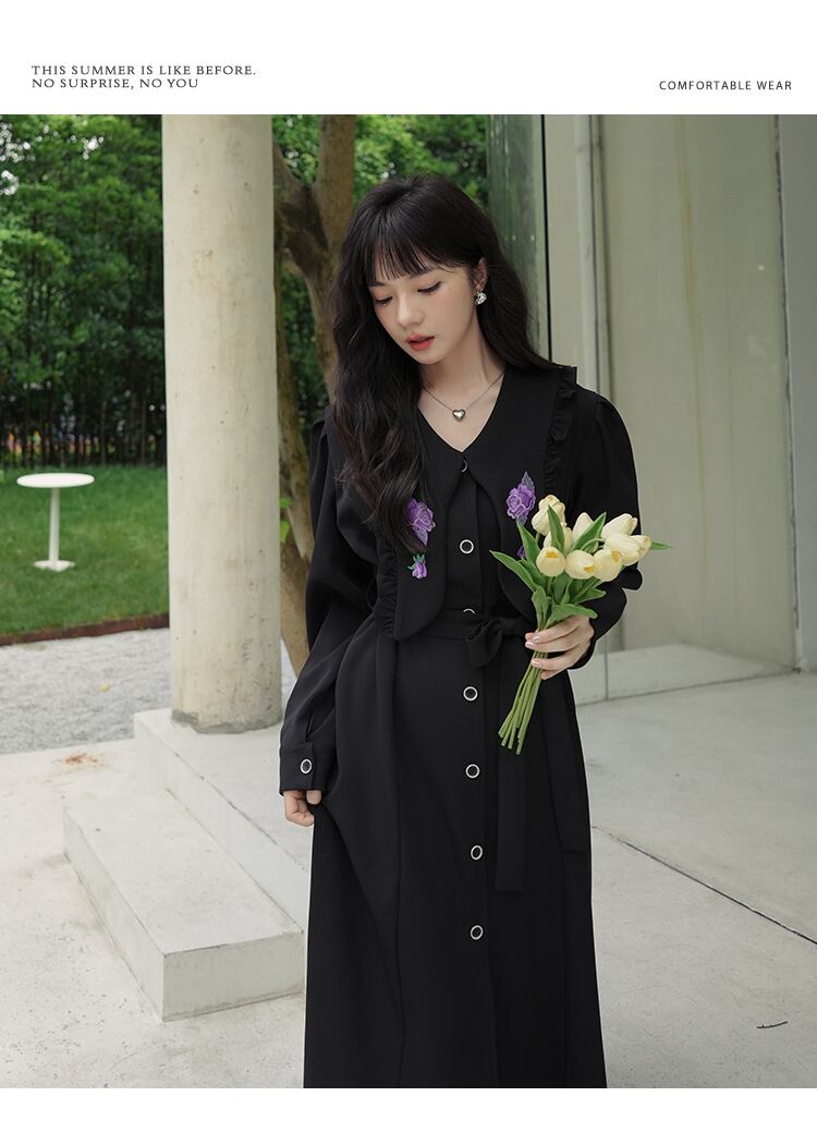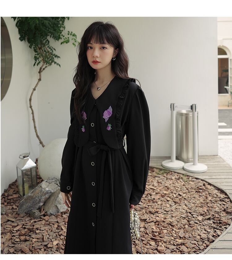 レディース ワンピース デート ワンピドレス ロング ロング丈 袖あり 長袖 Vネック 襟付き セミフレア Aライン 刺繍 前開き かわいい 大人可愛い きれいめ シンプル カジュアル 上品 おしゃれ お洒落 レトロ 大人女子 こなれ感 ラフ ラブリー キュート ガーリー 個性的 クール モード系 エレガント モダン 主役級 存在感 抜け感 レディース デート お出かけ 女子会 休日 着回し 普段使い ファッション コーデ スタイル モテ プレゼント 定番 トレンド インスタ映え