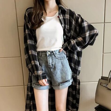トップス シャツ ロングシャツ 長袖 角襟 前開き ボタン ロング丈 かわいい 大人可愛い きれいめ シンプル 上品 おしゃれ かっこいい レトロ ラフ ルーズ こなれ感 個性的 主役級 存在感 抜け感 秋 冬 キュート ナチュラル ベーシック メンズライク チェック柄 レディース 女性用 ママ OL 通勤 オフィス 学生 通学 デート お出かけ お泊まり イベント 女子会 休日 アウトドア カフェ ショッピング レストラン コンパ レイヤード 重ね着 普段使い 着回し M L XL 2XL モテ