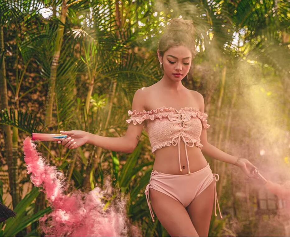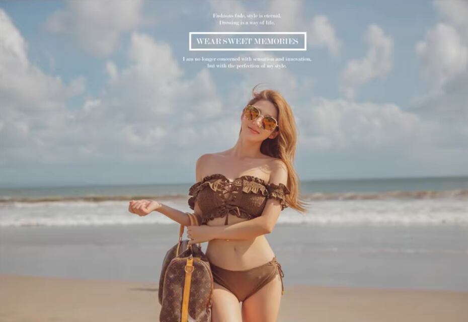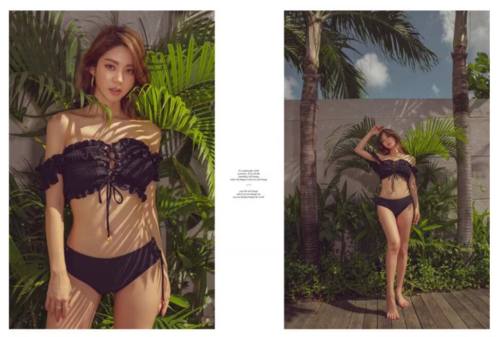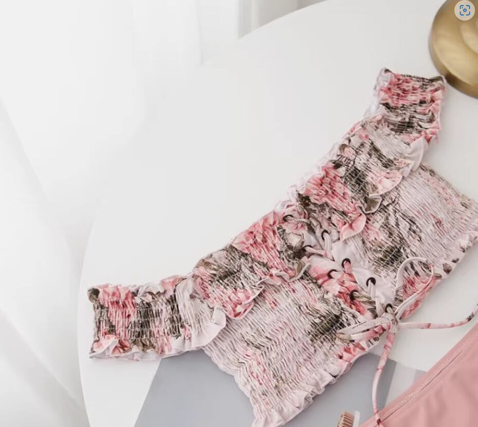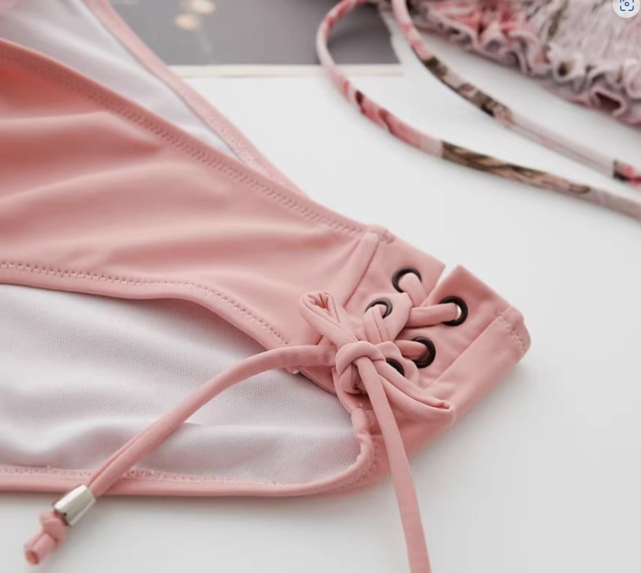 シャーリング&レースアップデザインがおしゃれなビキニ