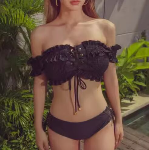 水着 ビキニ セパレート ビスチェ オフショルダー レースアップ 谷間魅せ セット 上下セット 2点セット かわいい 大人可愛い セクシー カジュアル 大人っぽい 女っぽ 無地 10代 20代 30代 40代 レディース 女性用 夏 海 ビーチ プール リゾート 旅行 モテ M L XL 黒 ブラック 茶色 ブラウン ピンク